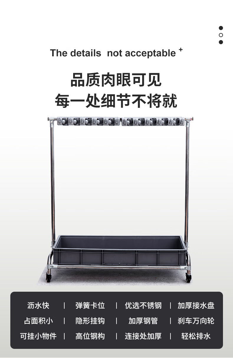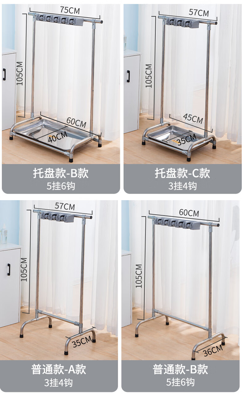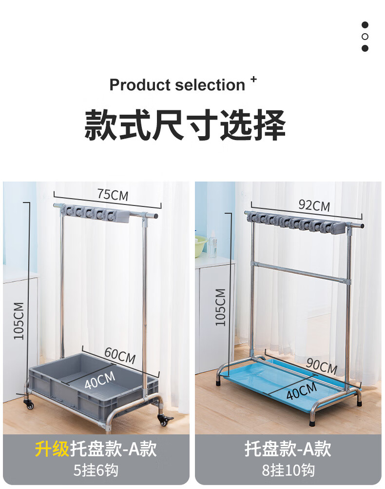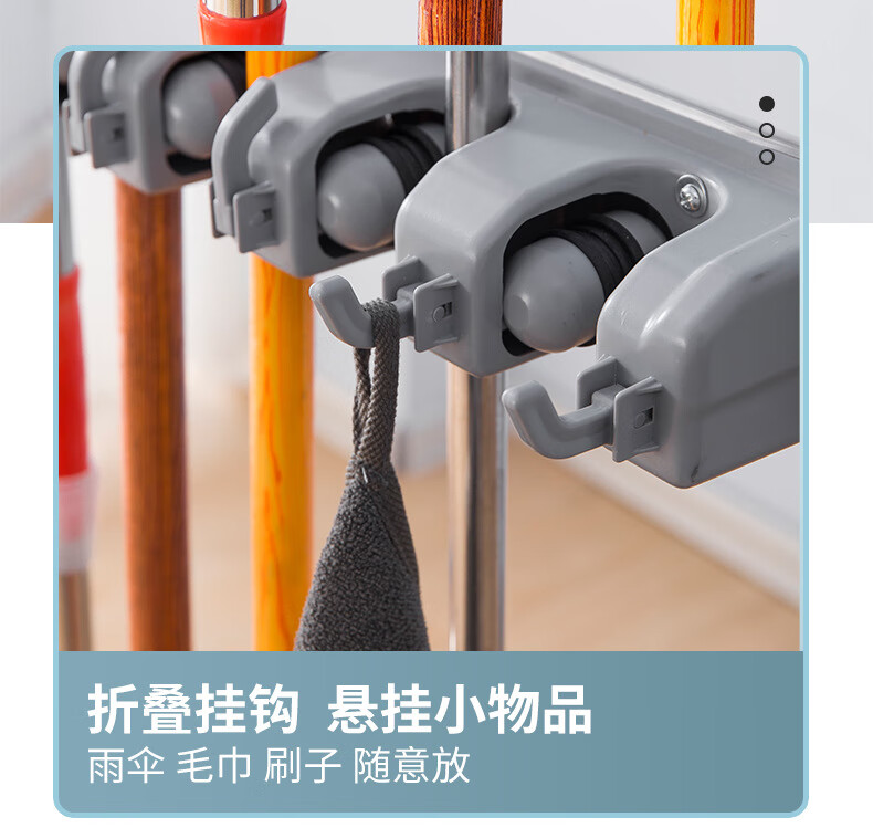 Caiyile stainless steel mop rack mop broom mop hanger floor-standing drain organizer cleaning tool storage rack 5 hangers 6 hooks with stainless steel basin 10189