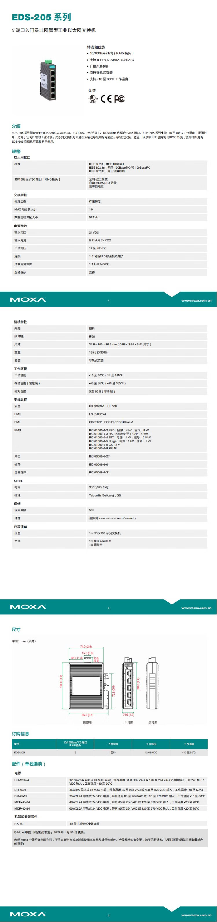 MOXA EDS-205 5-port 100M unmanaged industrial Ethernet switch