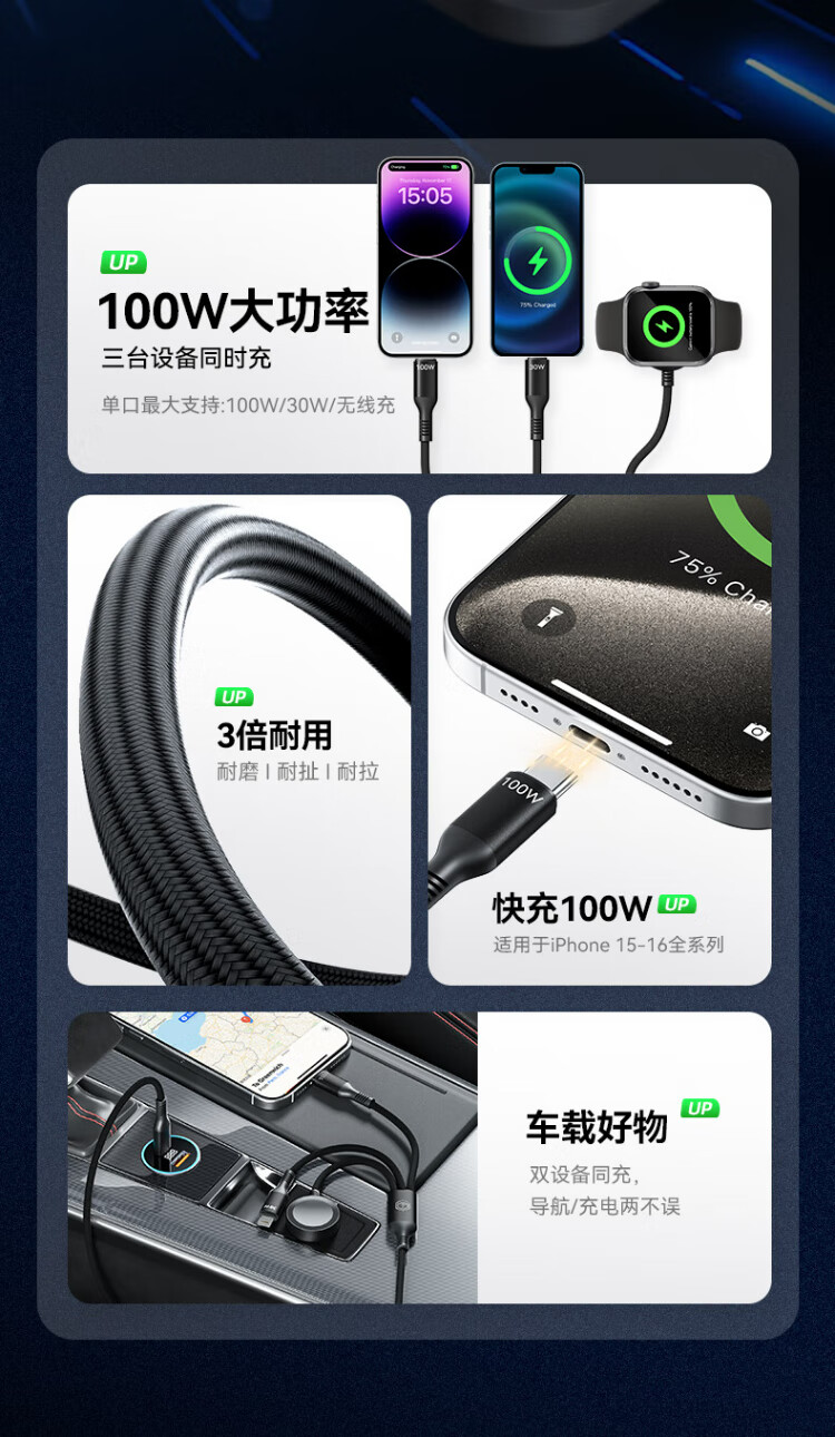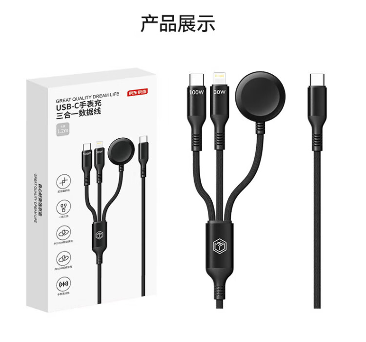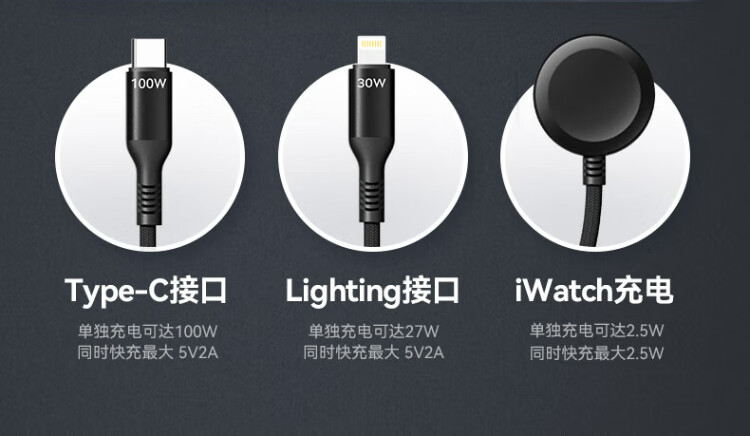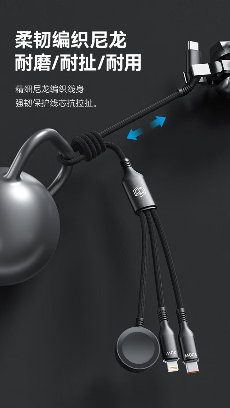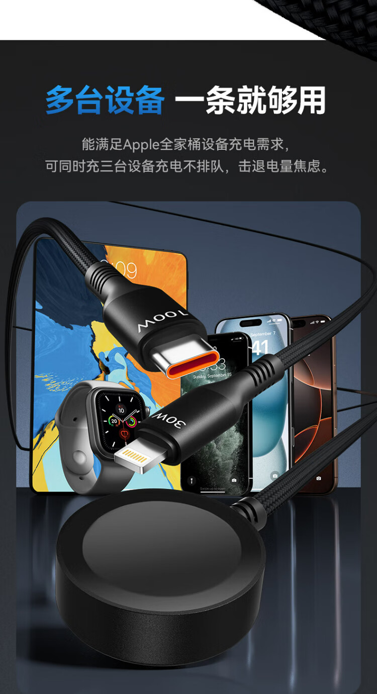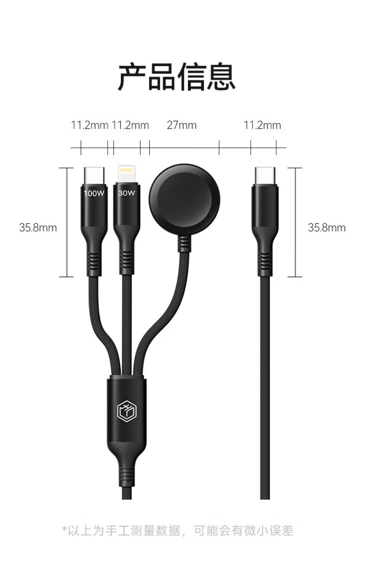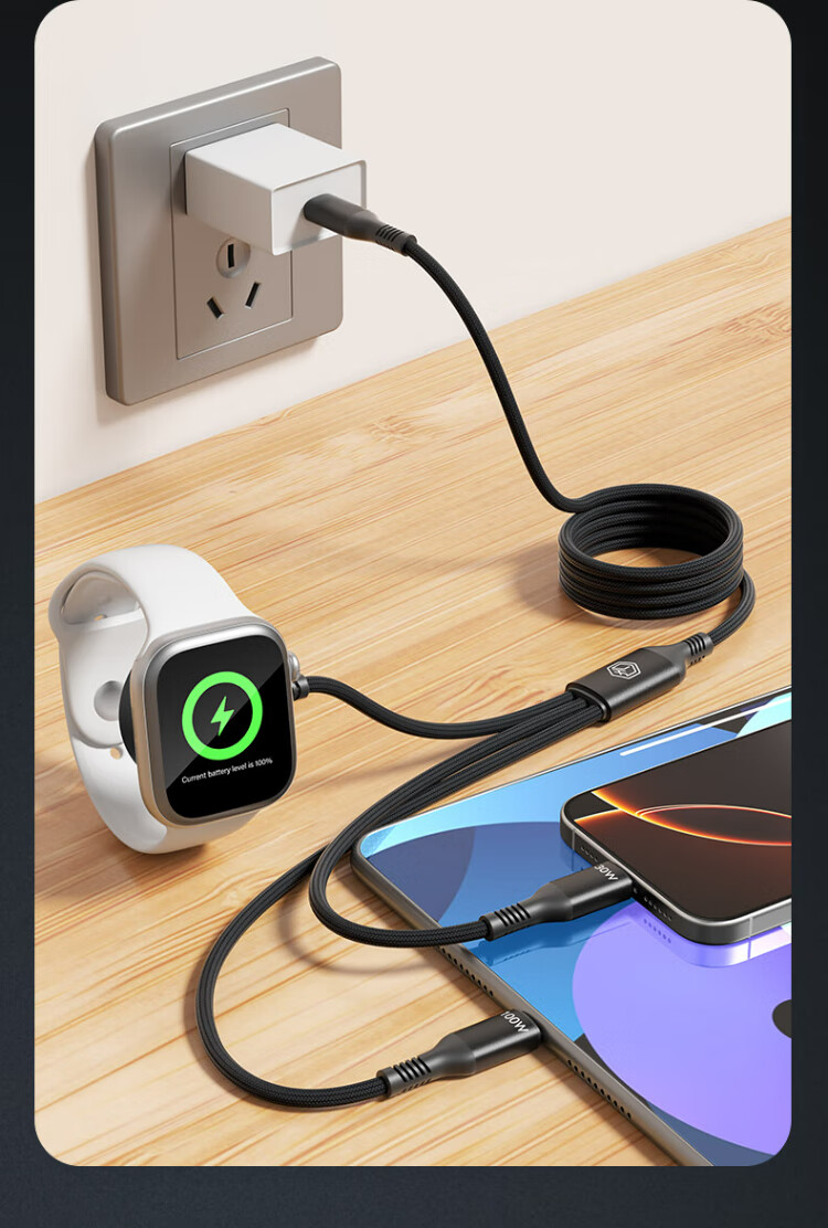 Made in Tokyo, Apple mobile watch three-in-one fast charging data cable PD100W/30W one-to-three iWatch magnetic wireless charging suitable for Apple mobile phones, laptops and tablets iWatch