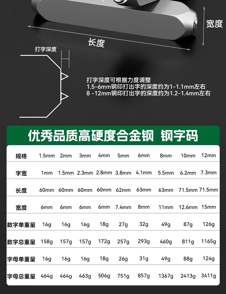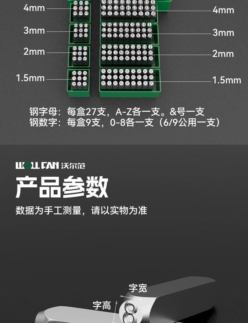 Wolfan steel stamping font digital stamping English letter stamping date coder percussion mark marking tool punch