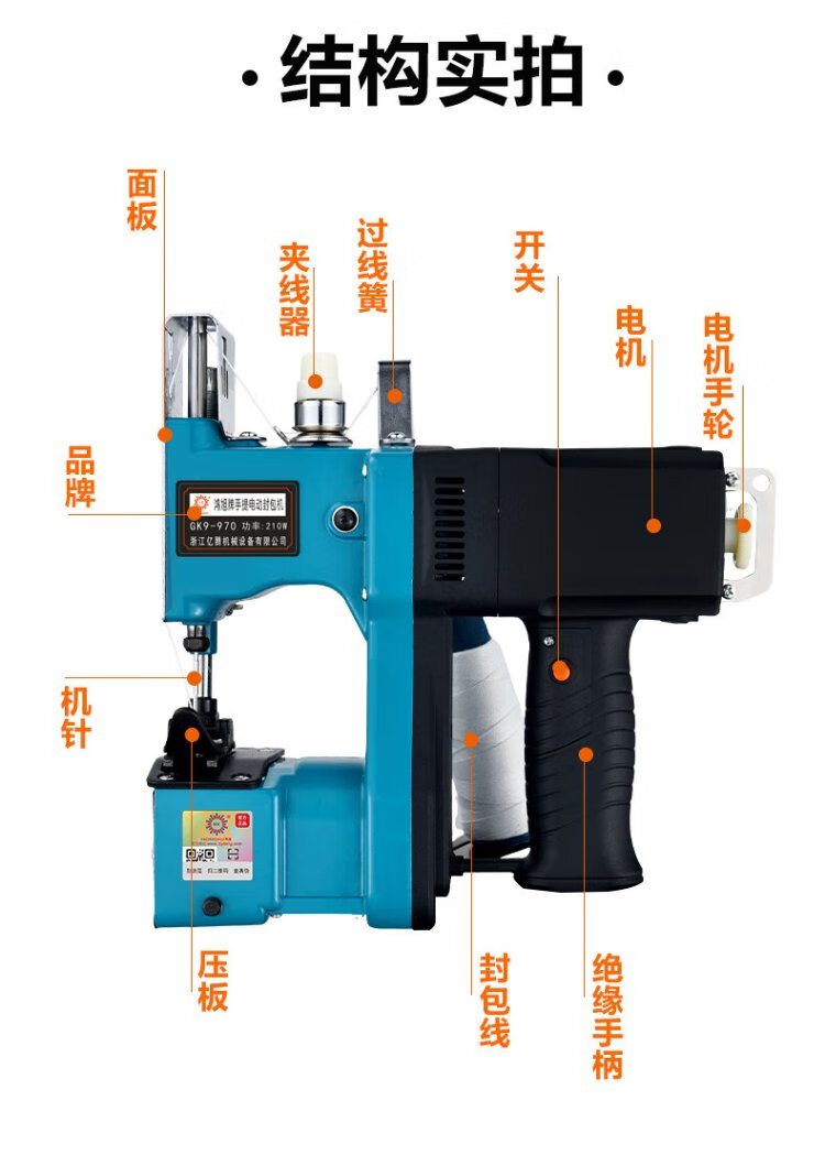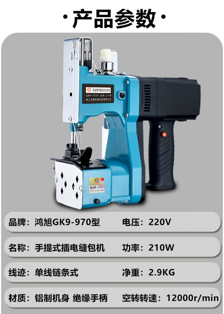 Hongxu bag sealing machine GK9-970 single-line plug-in express bag plug-in power cord to start portable plug-in bag sewing machine 220V sealing machine sewing machine bag sewing machine baling machine