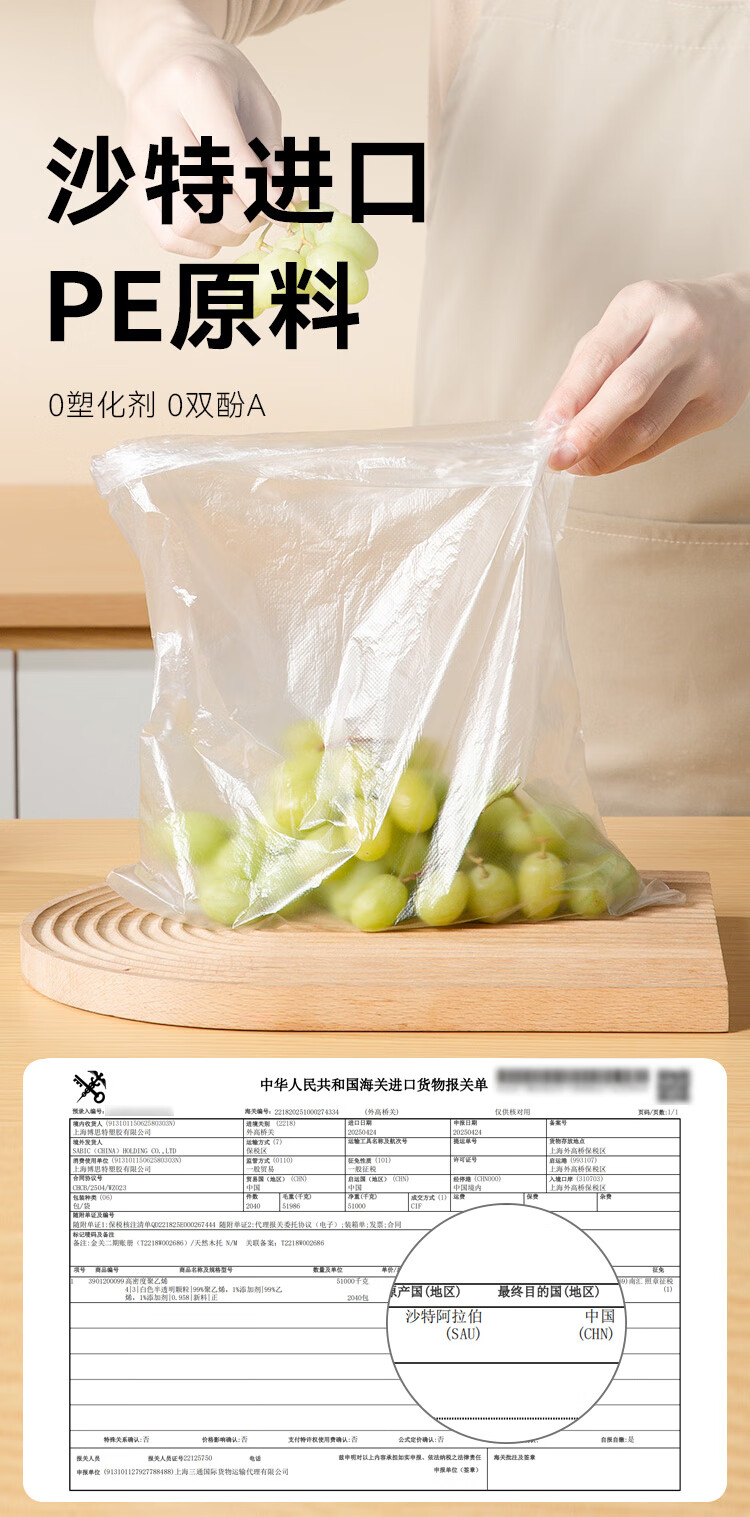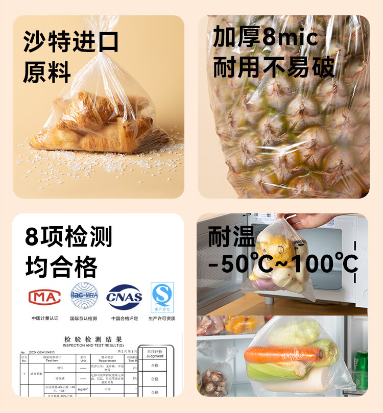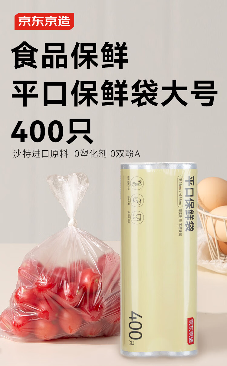 Made in Tokyo, fresh-keeping bags, food grade, large thickened flat mouth plastic bags, convenient bags, 25*35cm, 400 pieces