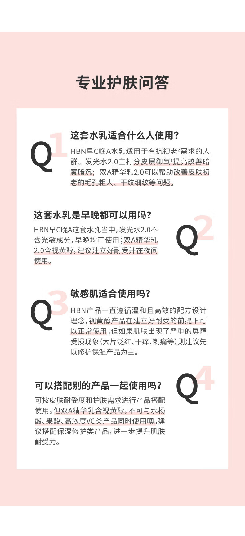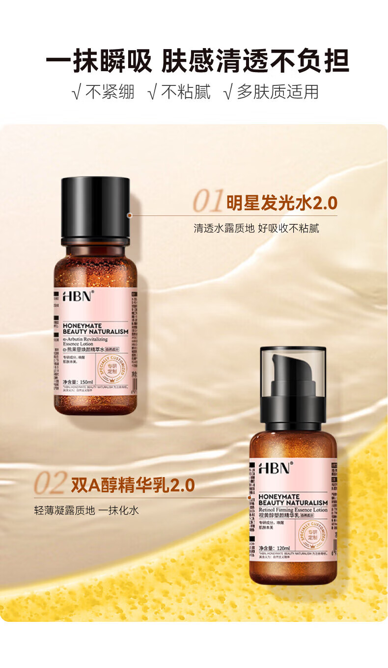 HBN water lotion set A alcohol morning C night A luminous water firming hydrating skin care products birthday gift for girlfriend