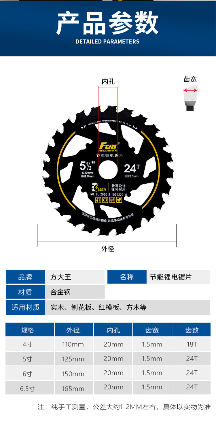 Fang Dawang energy-saving lithium electric saw woodworking special saw blade 140*24T two pieces with nail wood cutting electric circular saw table saw