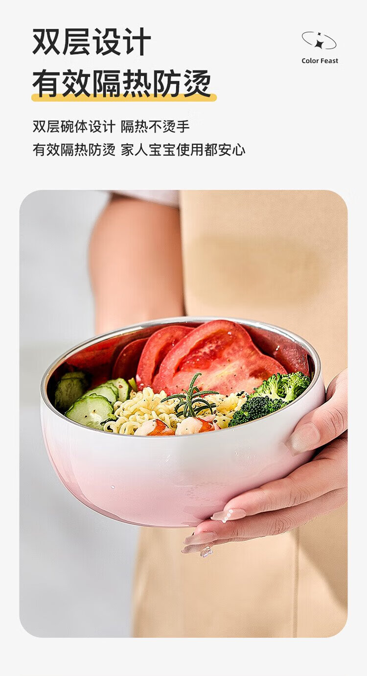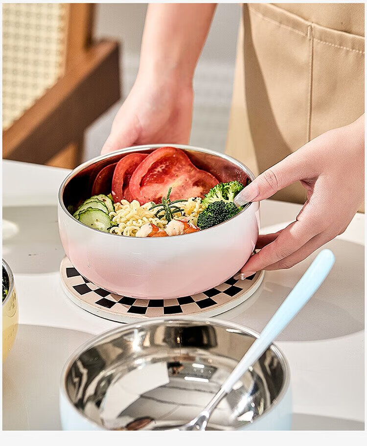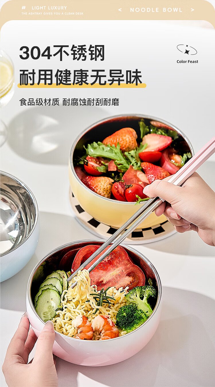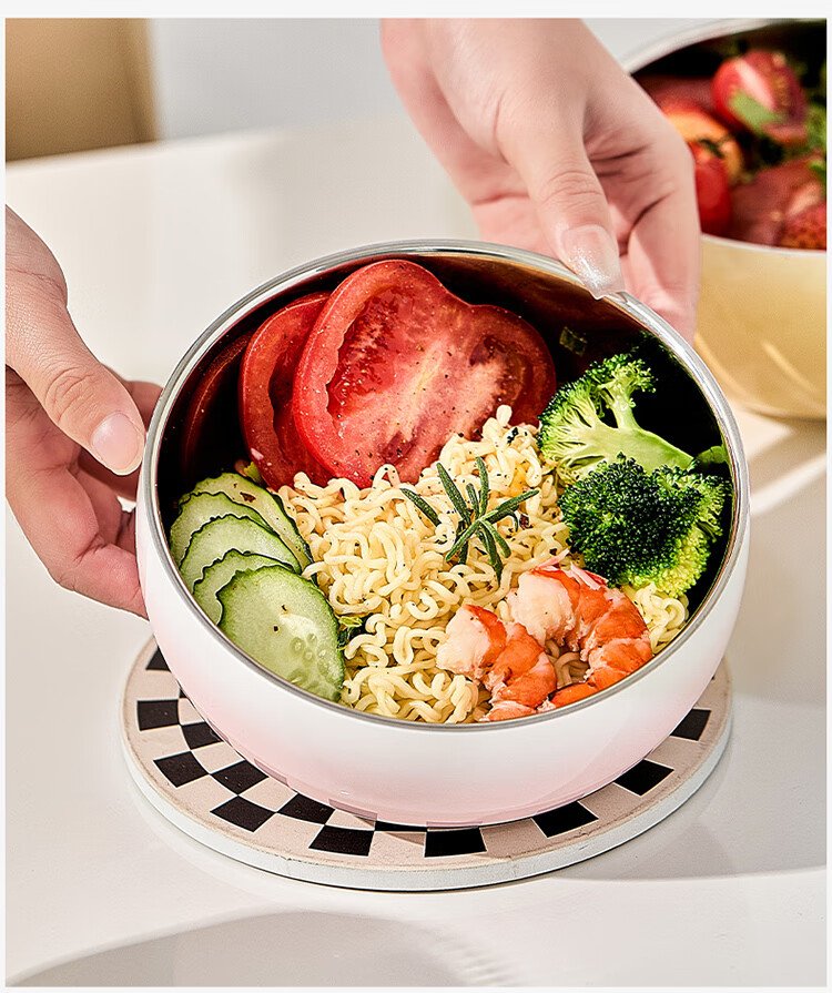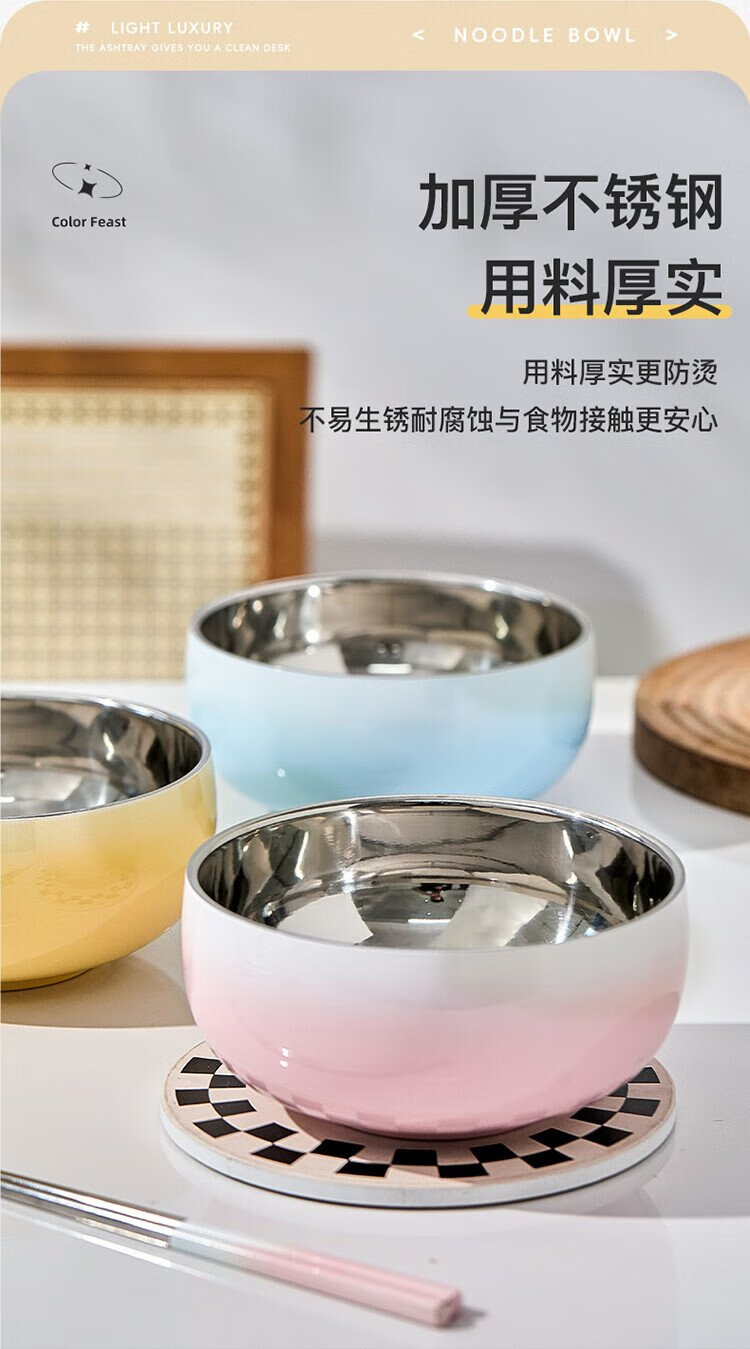 TREEJACK 304 stainless steel gradient color ramen soup bowl, high-looking ice cream salad bowl, double-layer anti-scalding cold noodle bowl