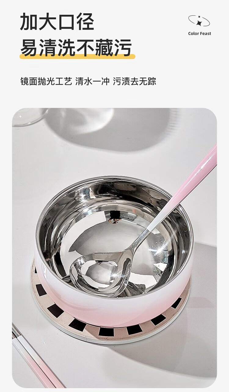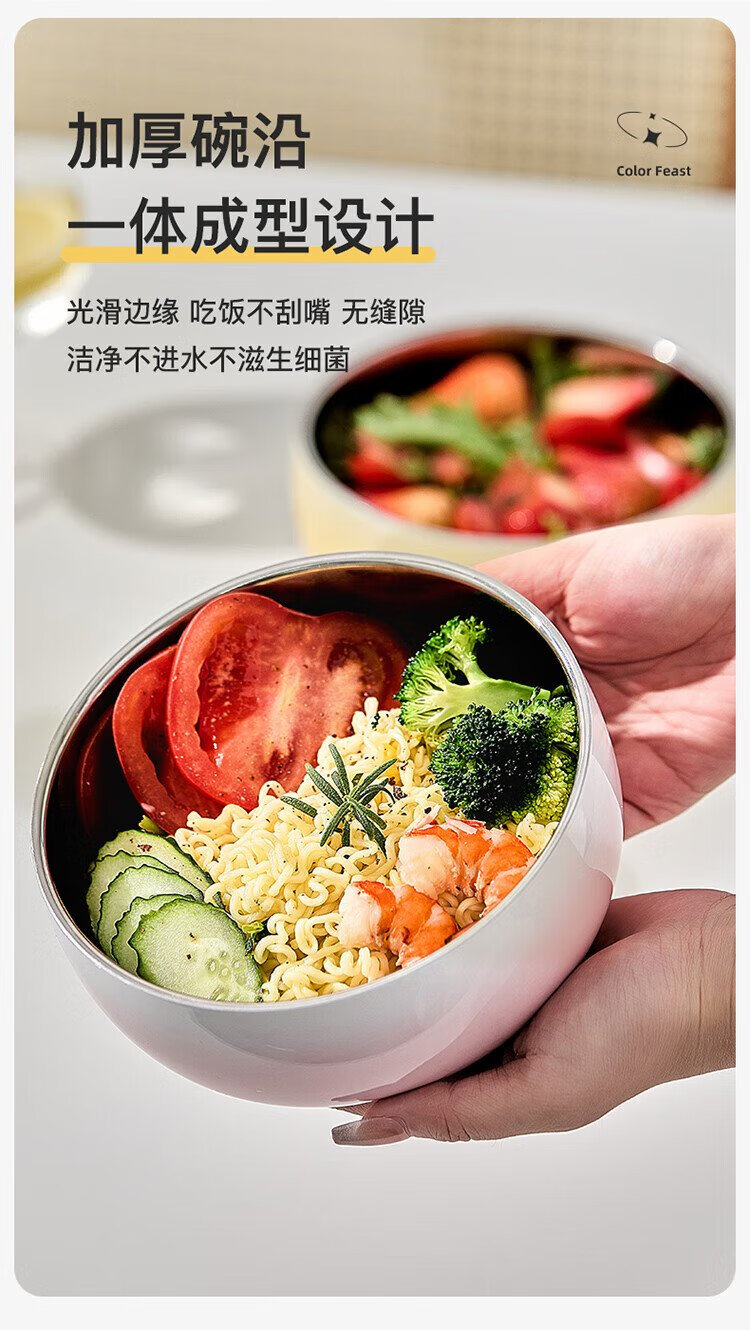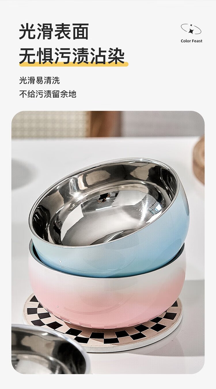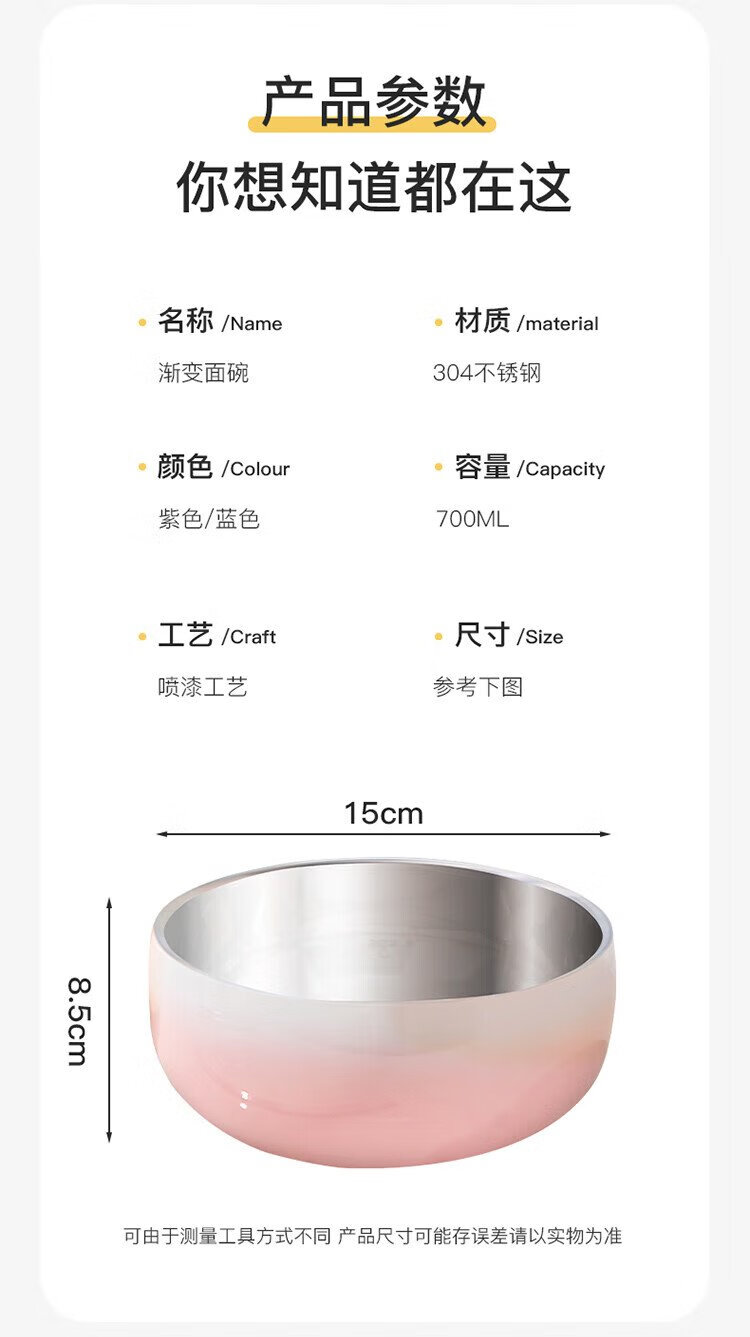TREEJACK 304 stainless steel gradient color ramen soup bowl, high-looking ice cream salad bowl, double-layer anti-scalding cold noodle bowl