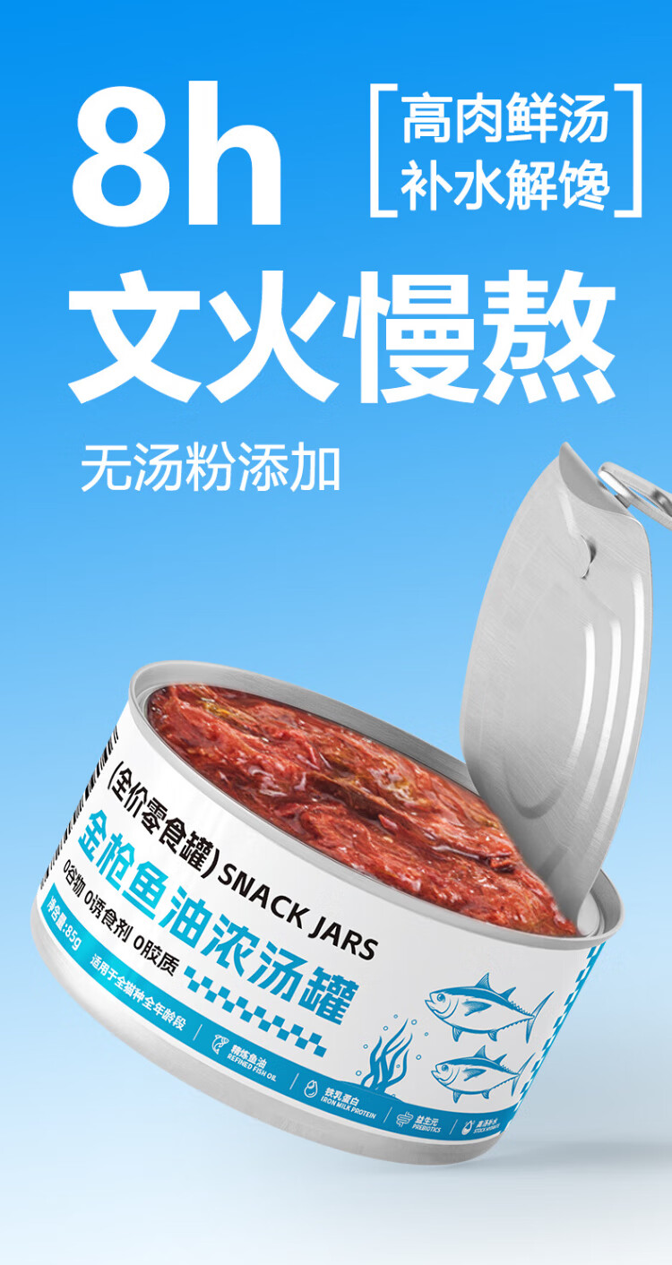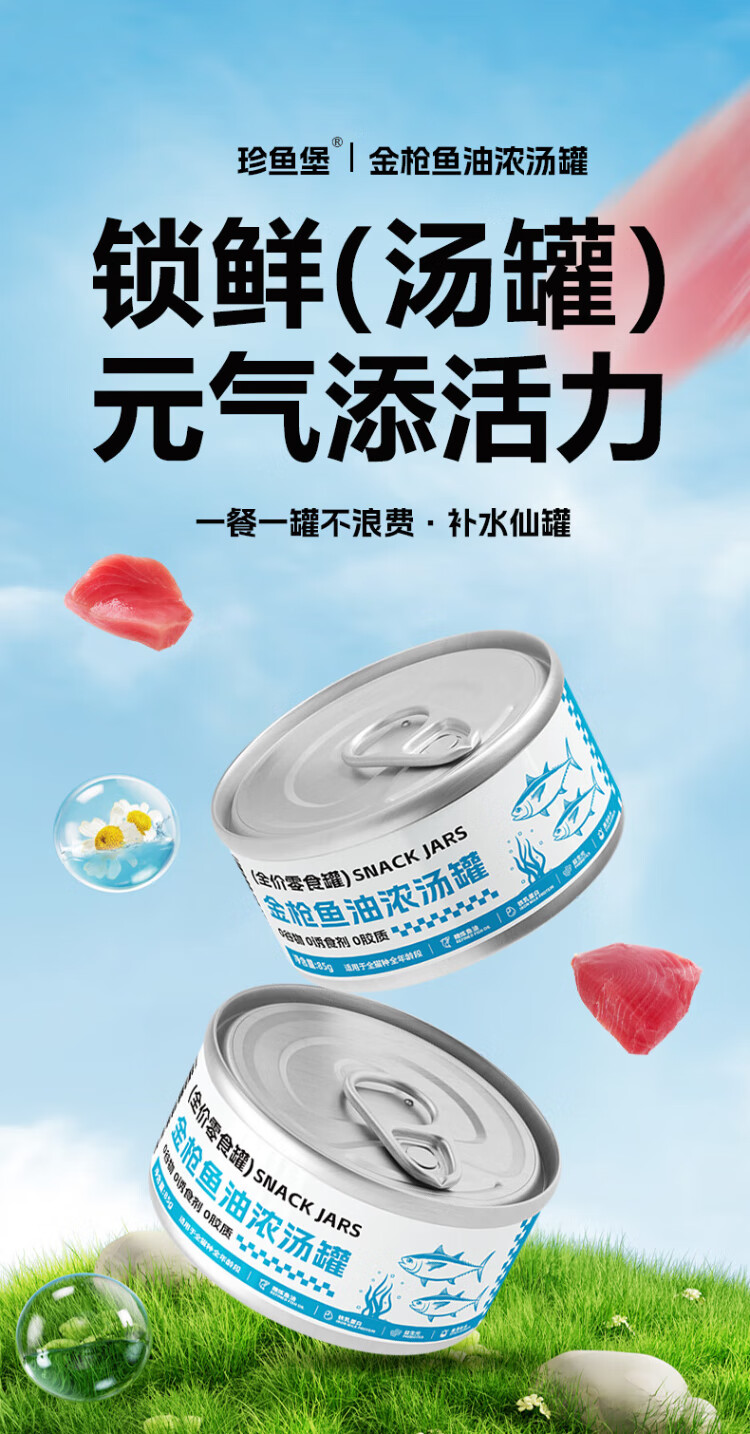 Zhenyubao cat snack can 85g*6 cans tuna fish oil flavor nutritional staple food cat rehydration soup can universal for young cats