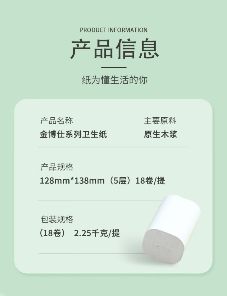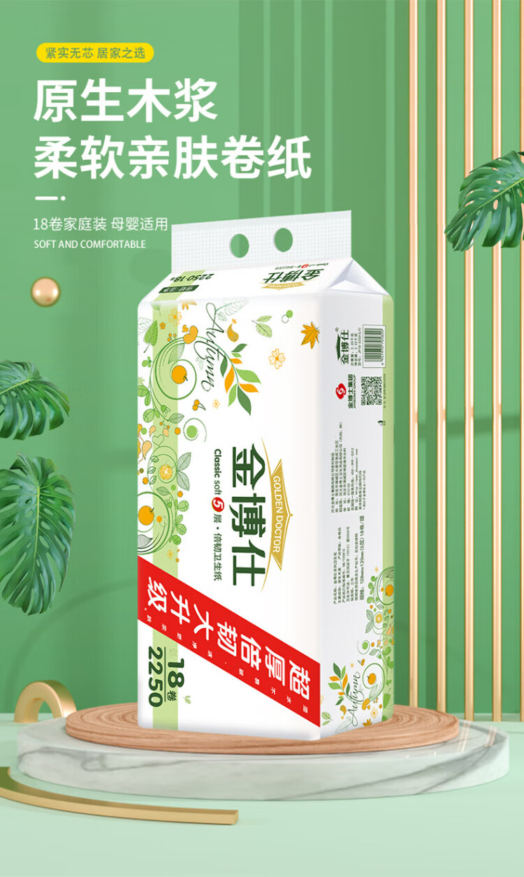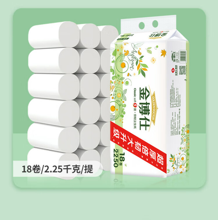 Jinboshi coreless roll paper 5 layers 2250g 18 rolls 2 lifts 4.5 kg toilet paper household paper towel toilet paper 9 catties