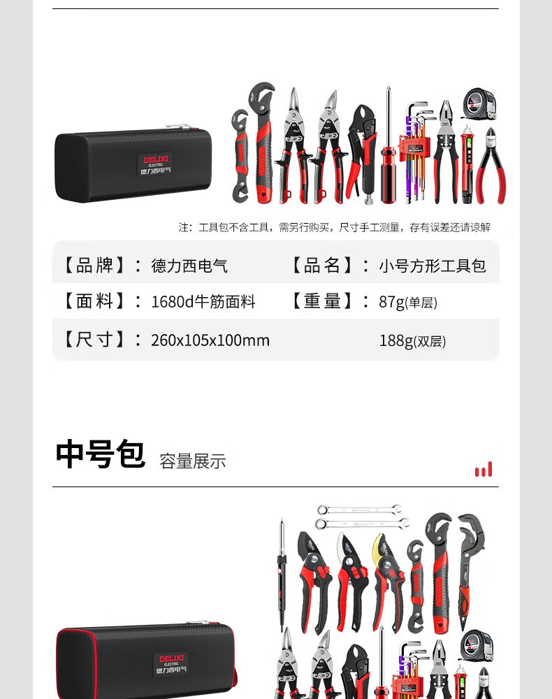 DELIXI ELECTRIC Tool Bag Canvas Thickened Storage Bag Special for Electrician Repair Small Double Layer Waterproof and Wear-Resistant Tool Bag