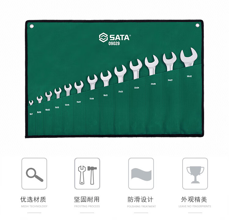 SATA 09029 13-piece fully polished double-end wrench set