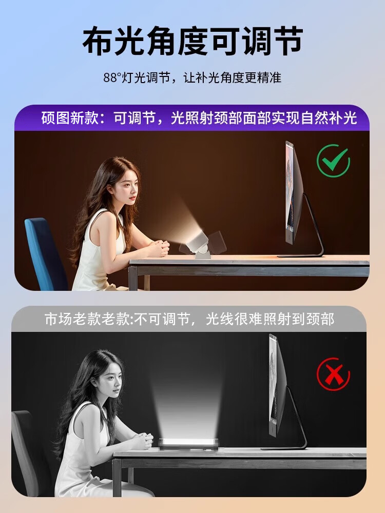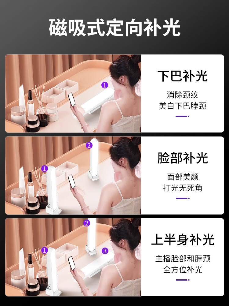 Shuotu live broadcast chin fill light, dedicated desktop magnetic neck pattern light for live broadcast room, three-color LED beauty shooting light to brighten skin color and face, professional photography remote control light, soft light