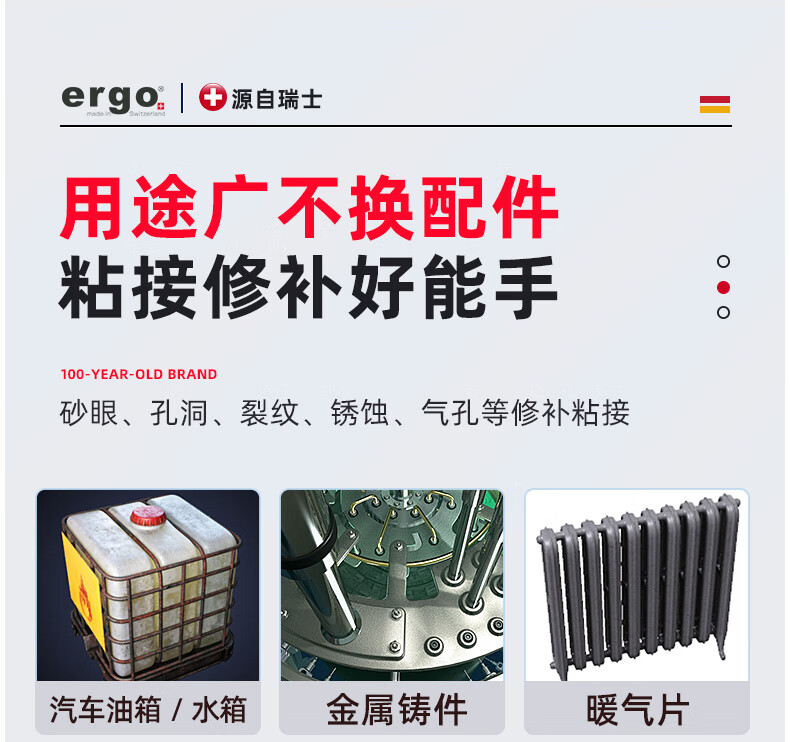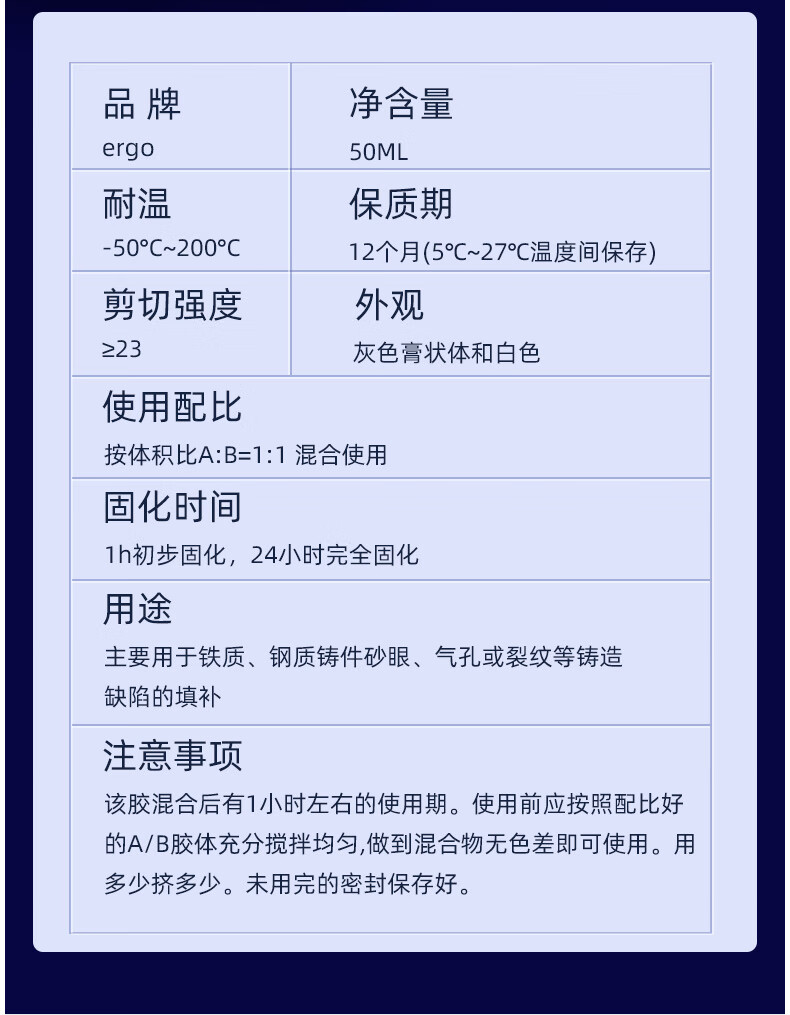 Ergo9922 caster's glue, high temperature resistant welding ab glue, electric welding strong glue, waterproof, stained stainless steel oil tank, leaking water, iron radiator, universal welding agent, special metal repair agent