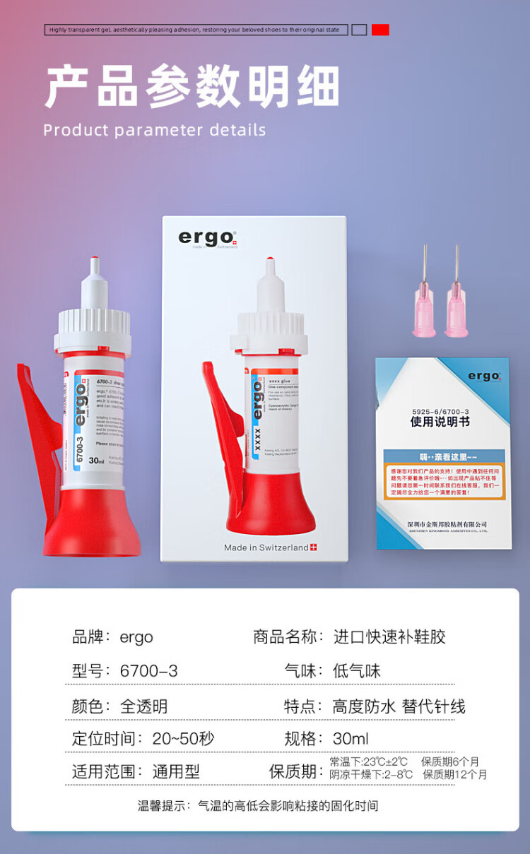 Ergo6700-3 shoe glue, special soft glue for shoe repair, universal waterproof, quick-drying and strong adhesion, shoe repair glue, sports canvas shoes, leather shoe soles, strong shoe repair glue
