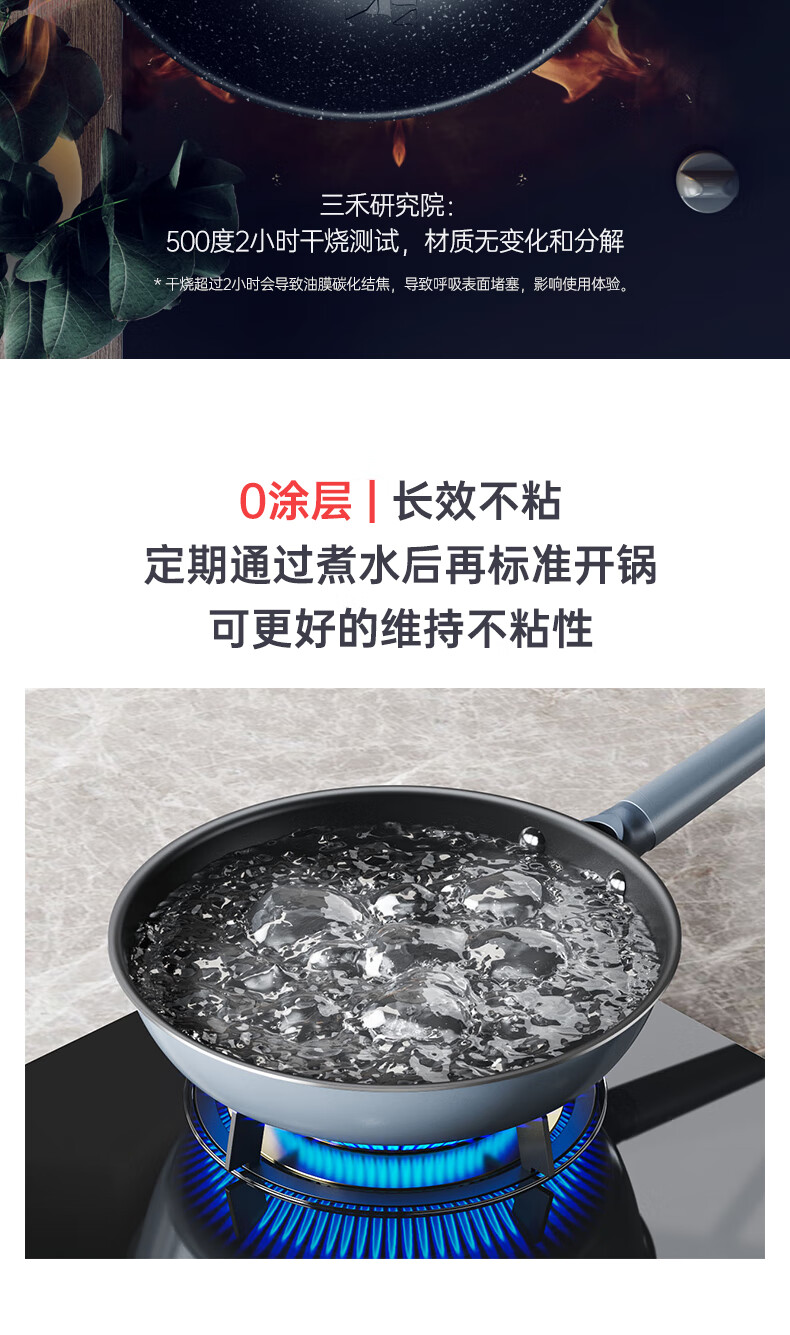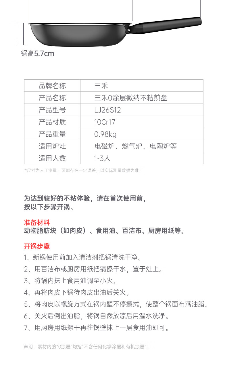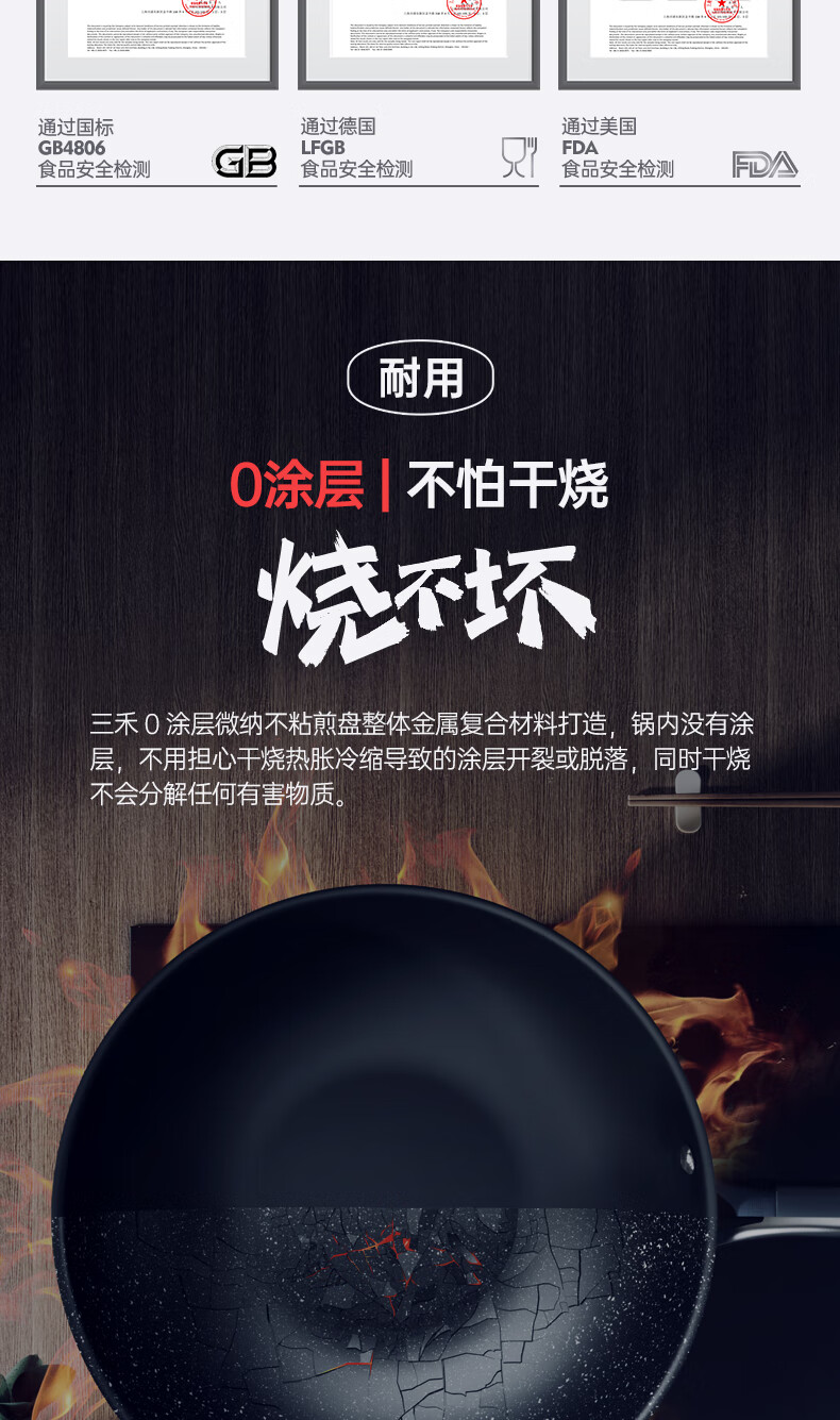 Sanhe 0-coated micro-nano non-stick frying pan 26cm lidless pan gas stove induction cooker LJ26S12 (black)