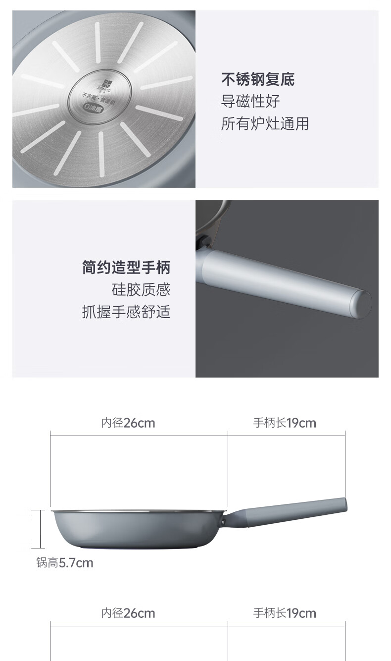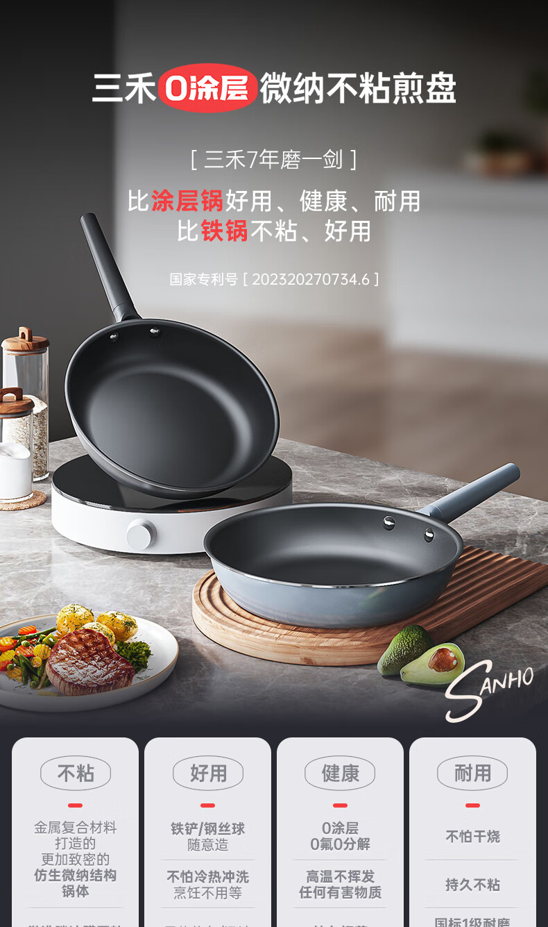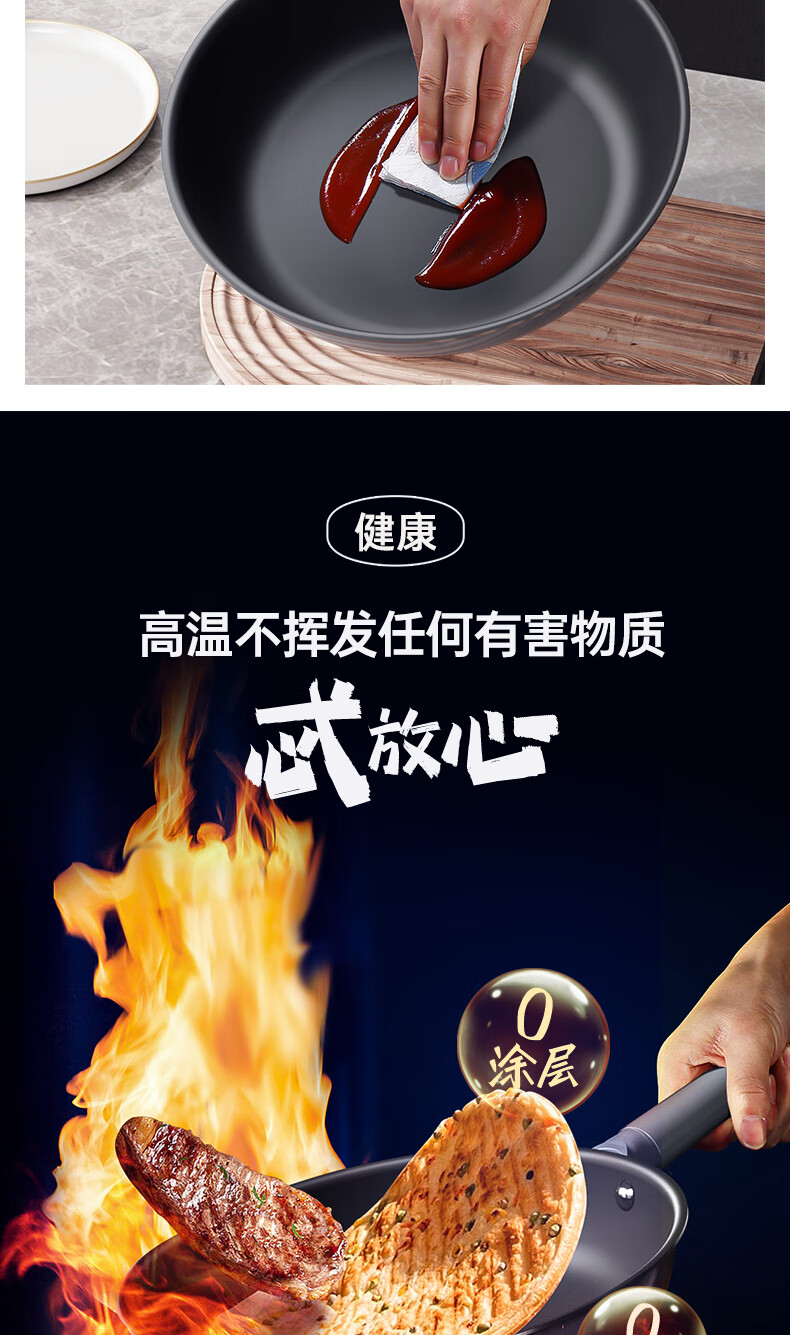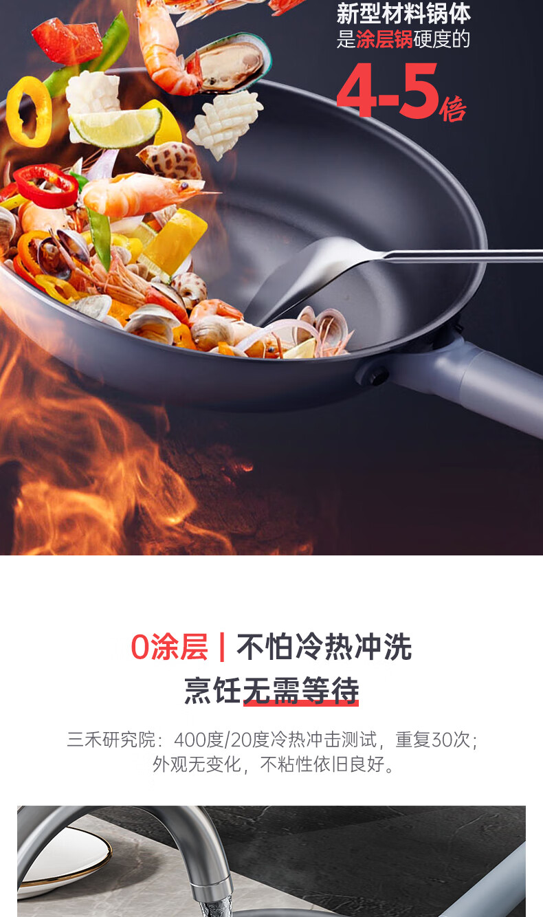 Sanhe 0-coated micro-nano non-stick frying pan 26cm lidless pan gas stove induction cooker LJ26S12 (black)