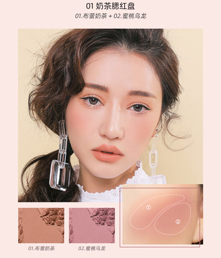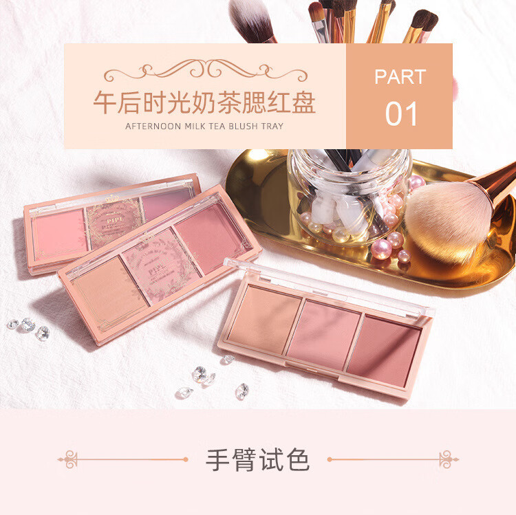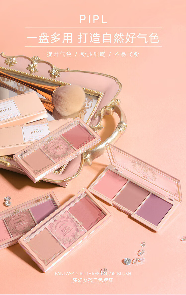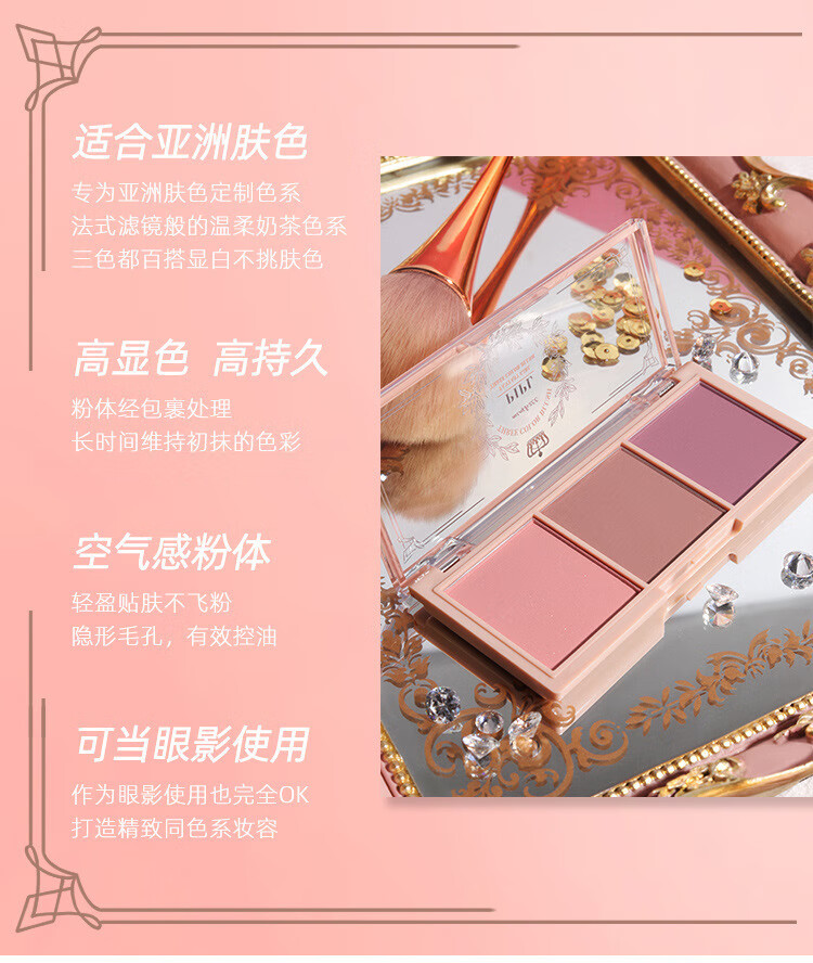 Gemeng three-color blush children's nude makeup natural rouge milk tea color long-lasting sunburn female multi-color all-in-one plate student Internet celebrity