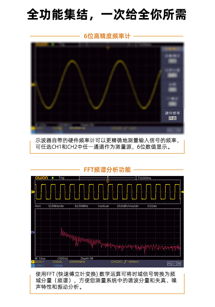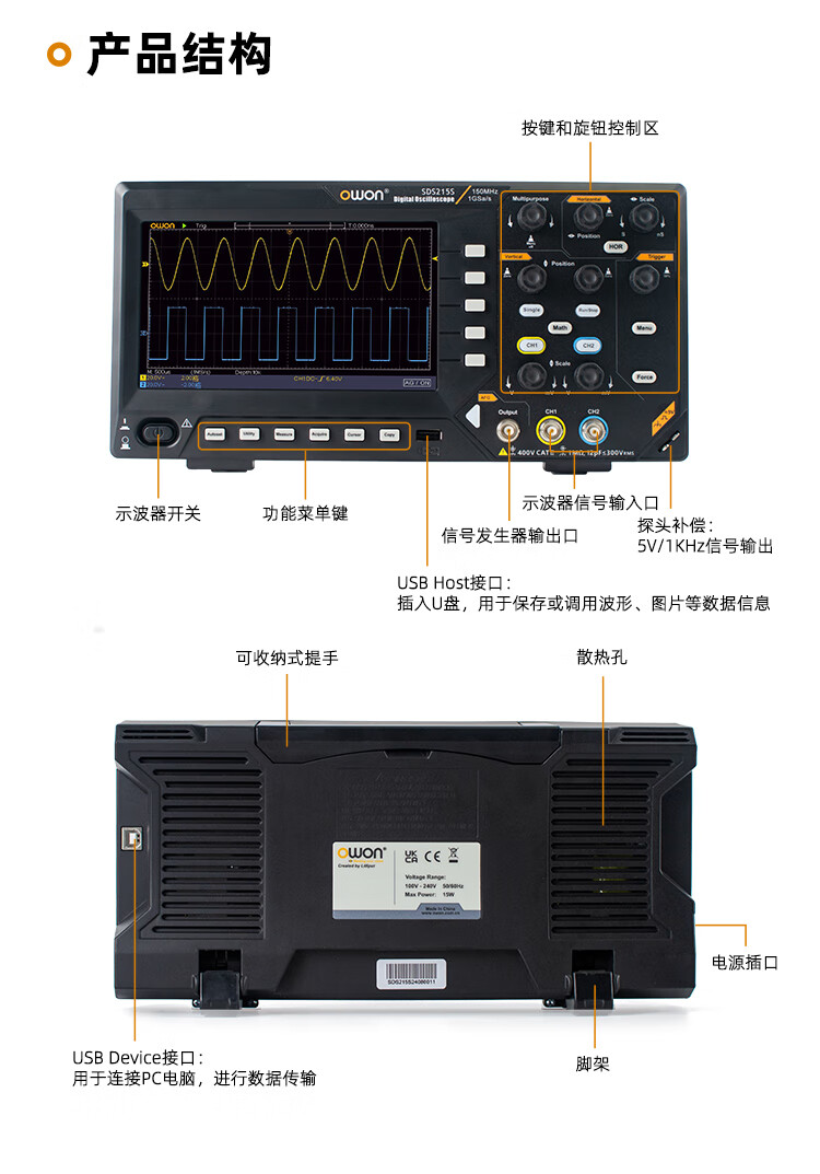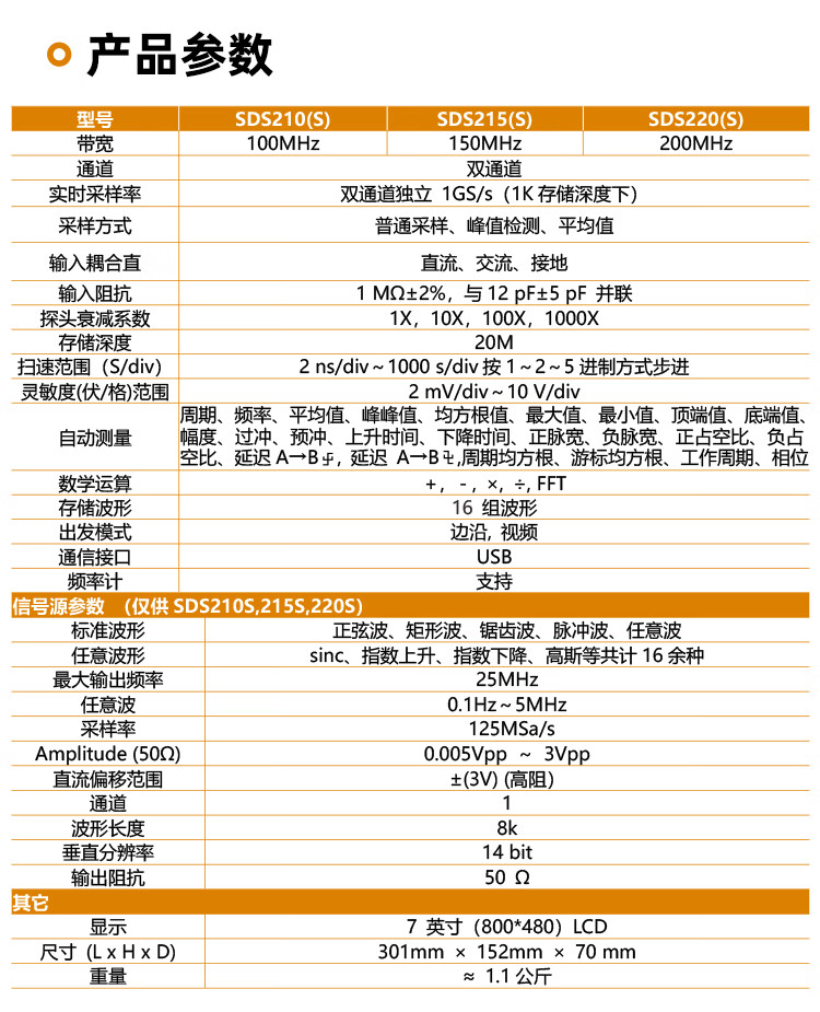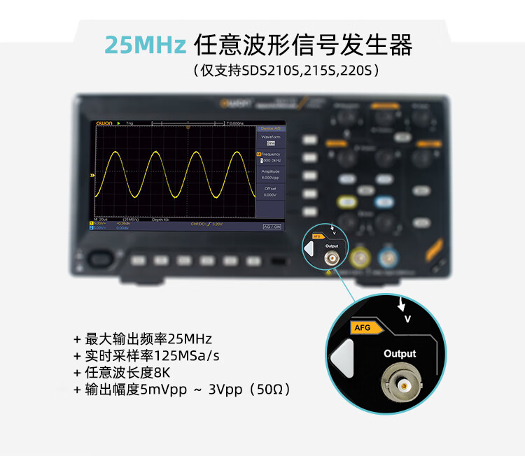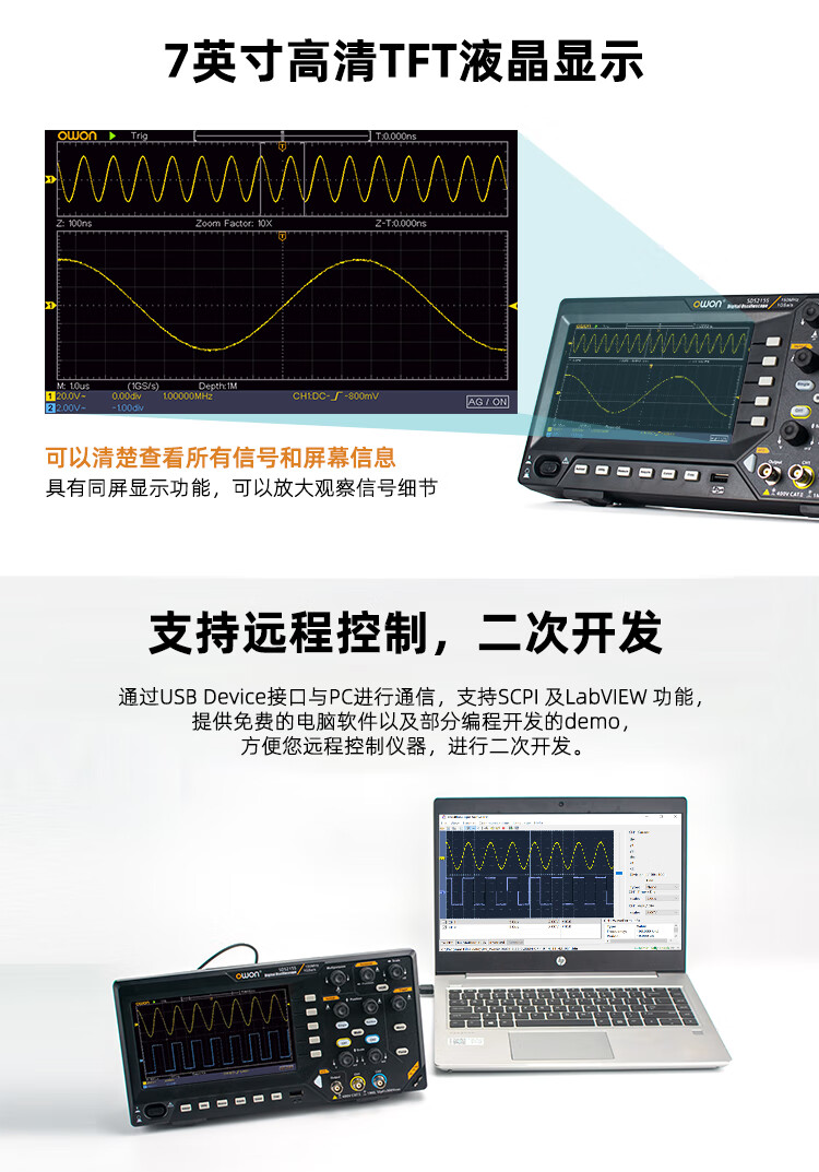 Owon Lillipu desktop digital oscilloscope SDS210 dual-channel bandwidth 100MHz sampling rate 1GS/s supports SCPI and LabVIEW