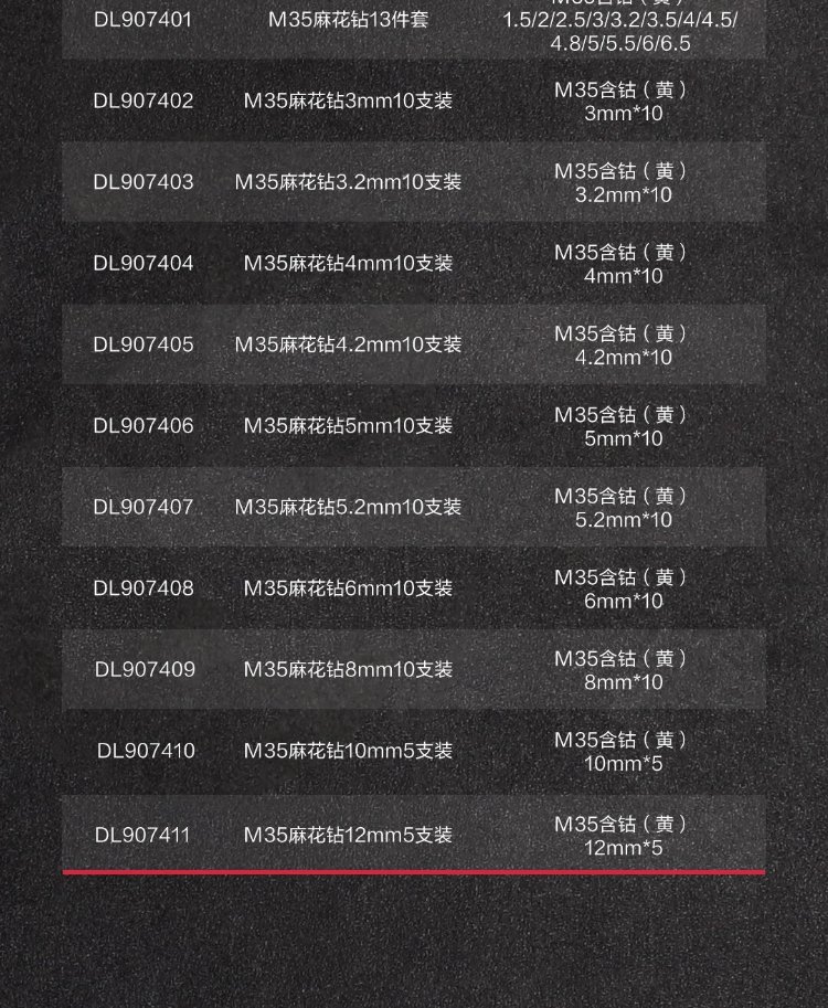 Deli twist drill bit concrete metal drilling stainless steel special hand electric drill M35 high cobalt content industrial grade 13-piece set