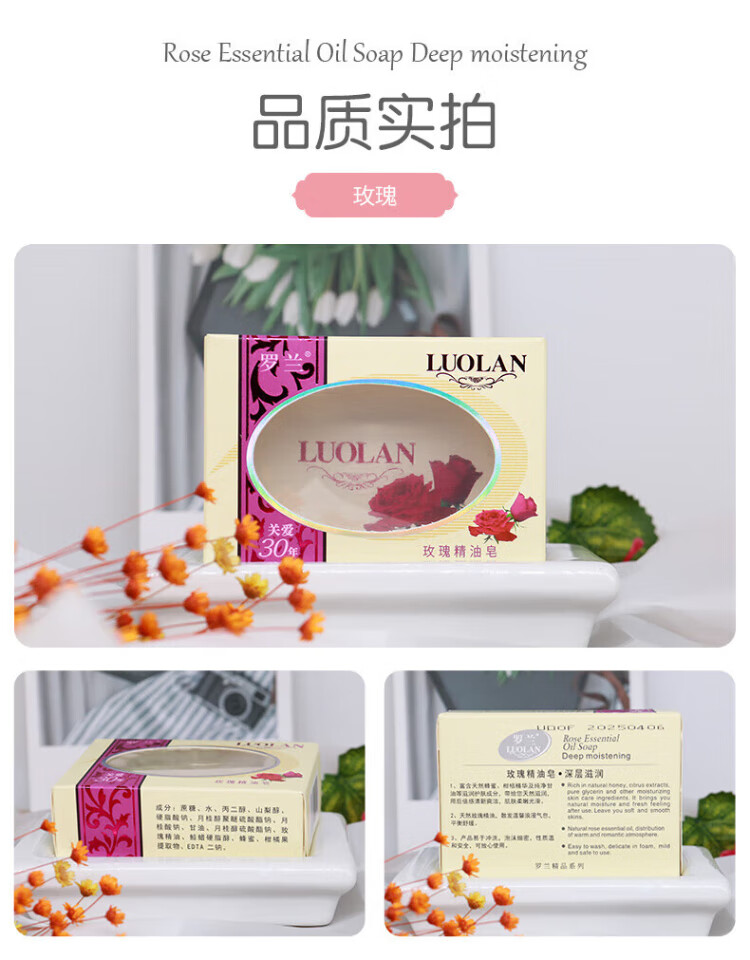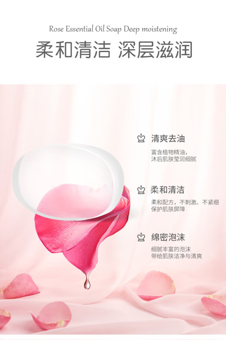 Roland rose essential oil soap 128g*3 pieces of soap long-lasting fragrance transparent soap men and women cleansing soap deep cleaning