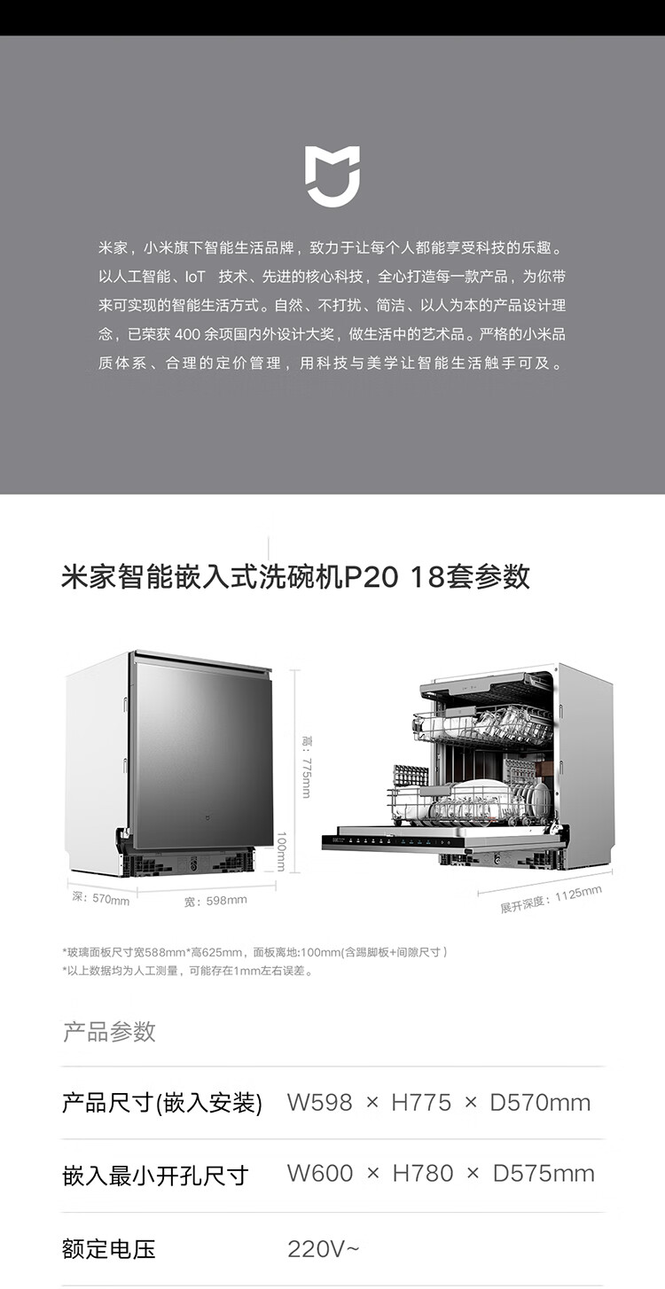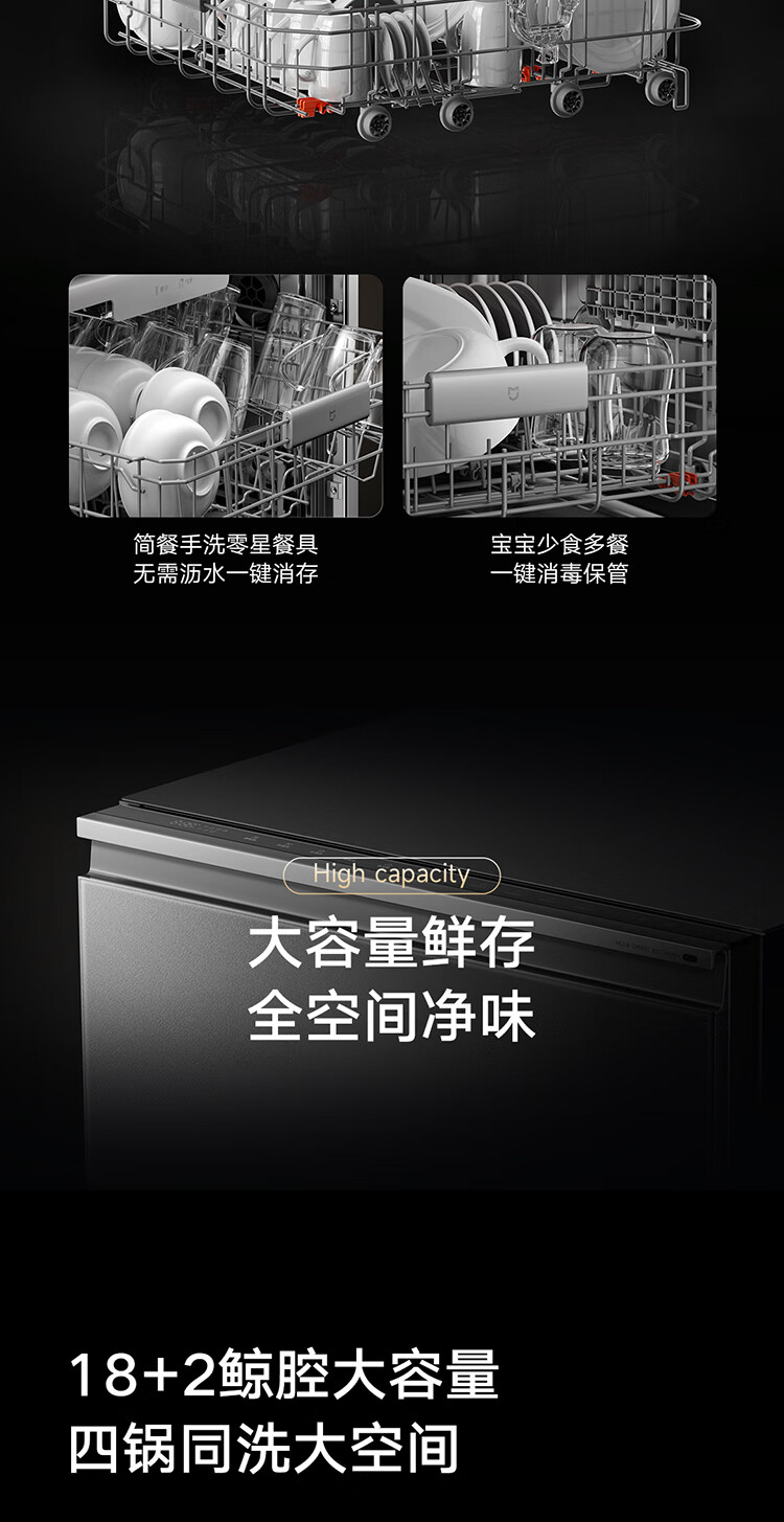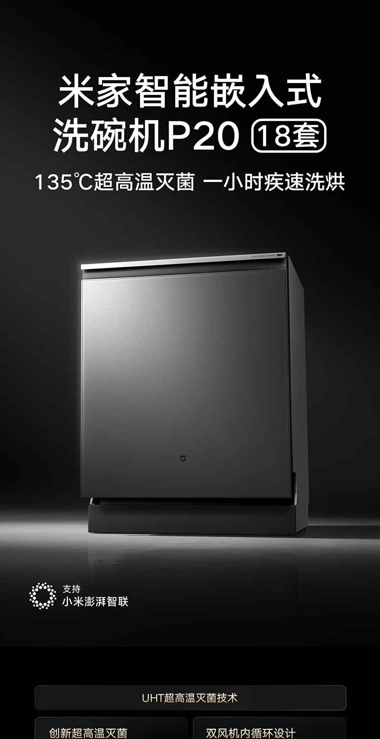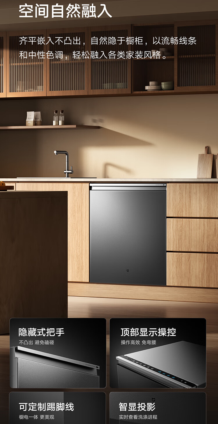 Mijia Xiaomi fully built-in dishwasher Ai smart washing high-end 18 sets P20 washing and disinfecting integrated 135 drying 59 minutes washing and drying automatic opening and closing door QMDW1803M