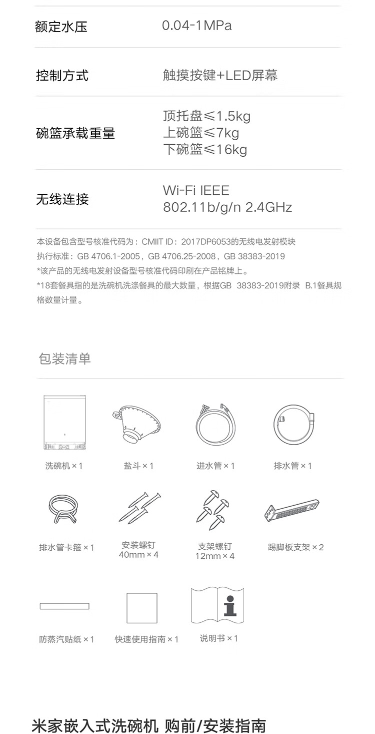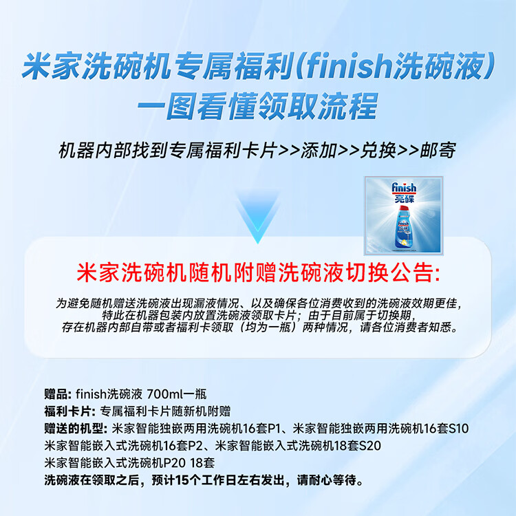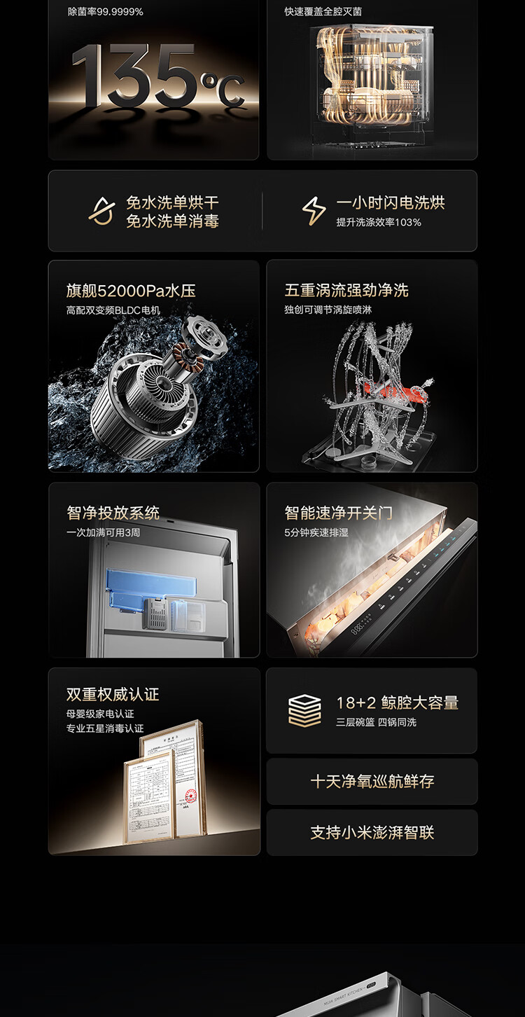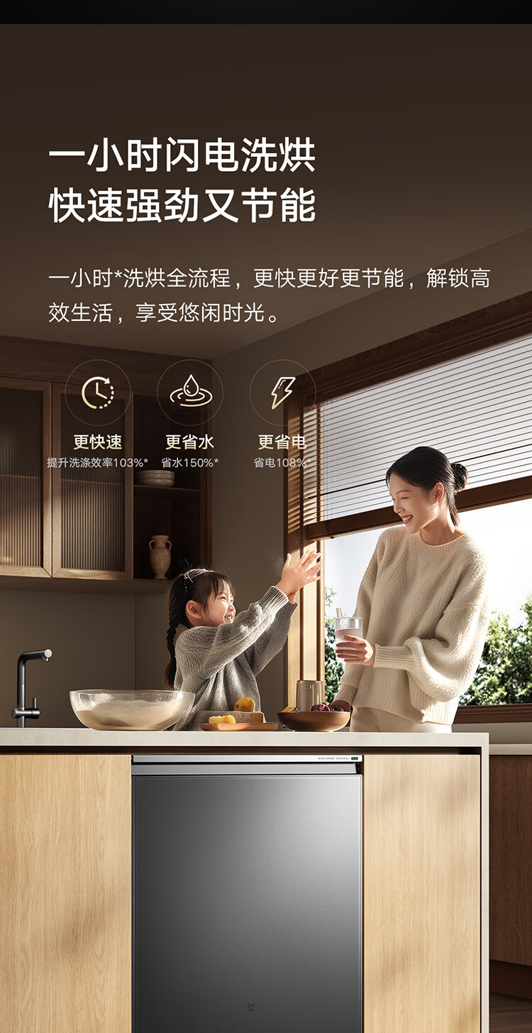 Mijia Xiaomi fully built-in dishwasher Ai smart washing high-end 18 sets P20 washing and disinfecting integrated 135 drying 59 minutes washing and drying automatic opening and closing door QMDW1803M