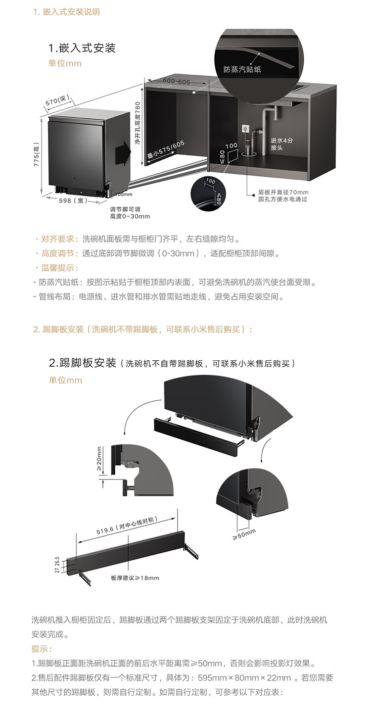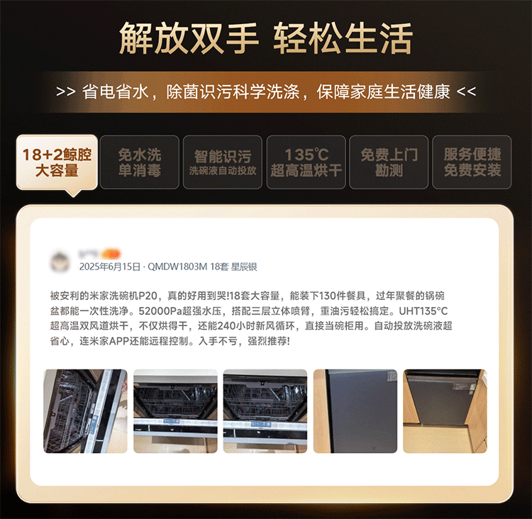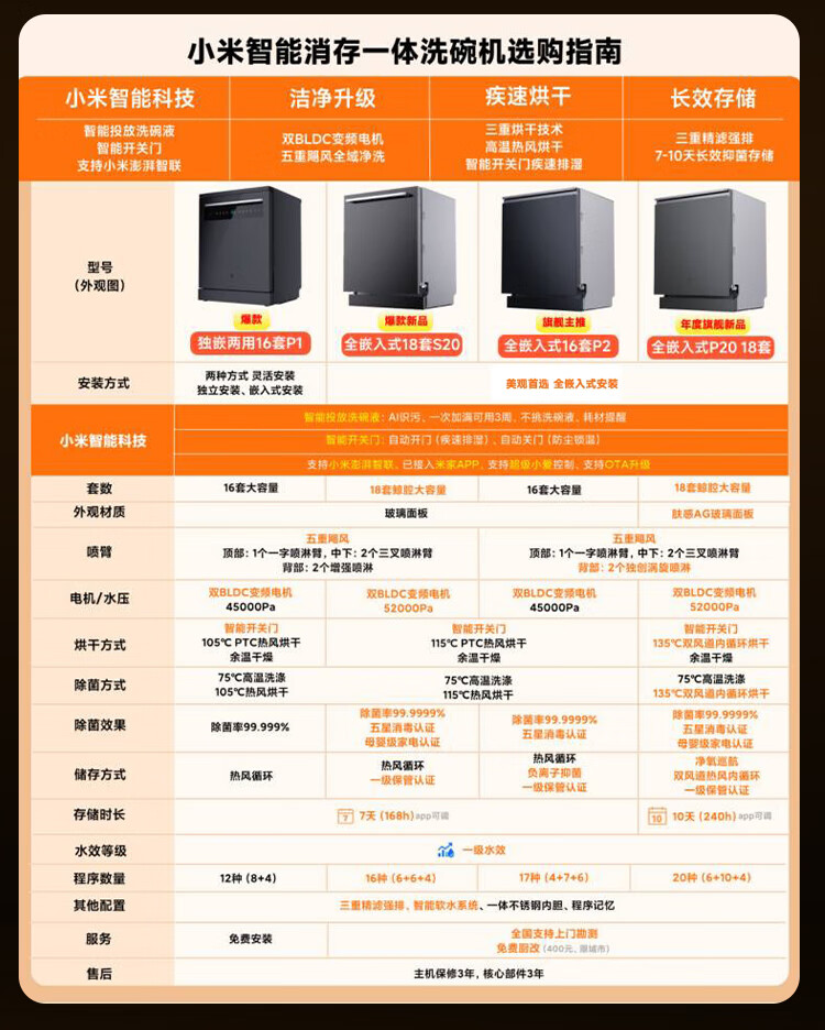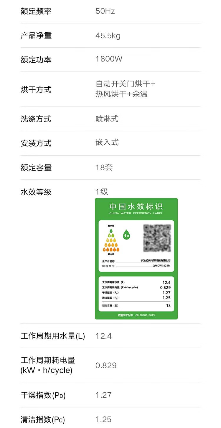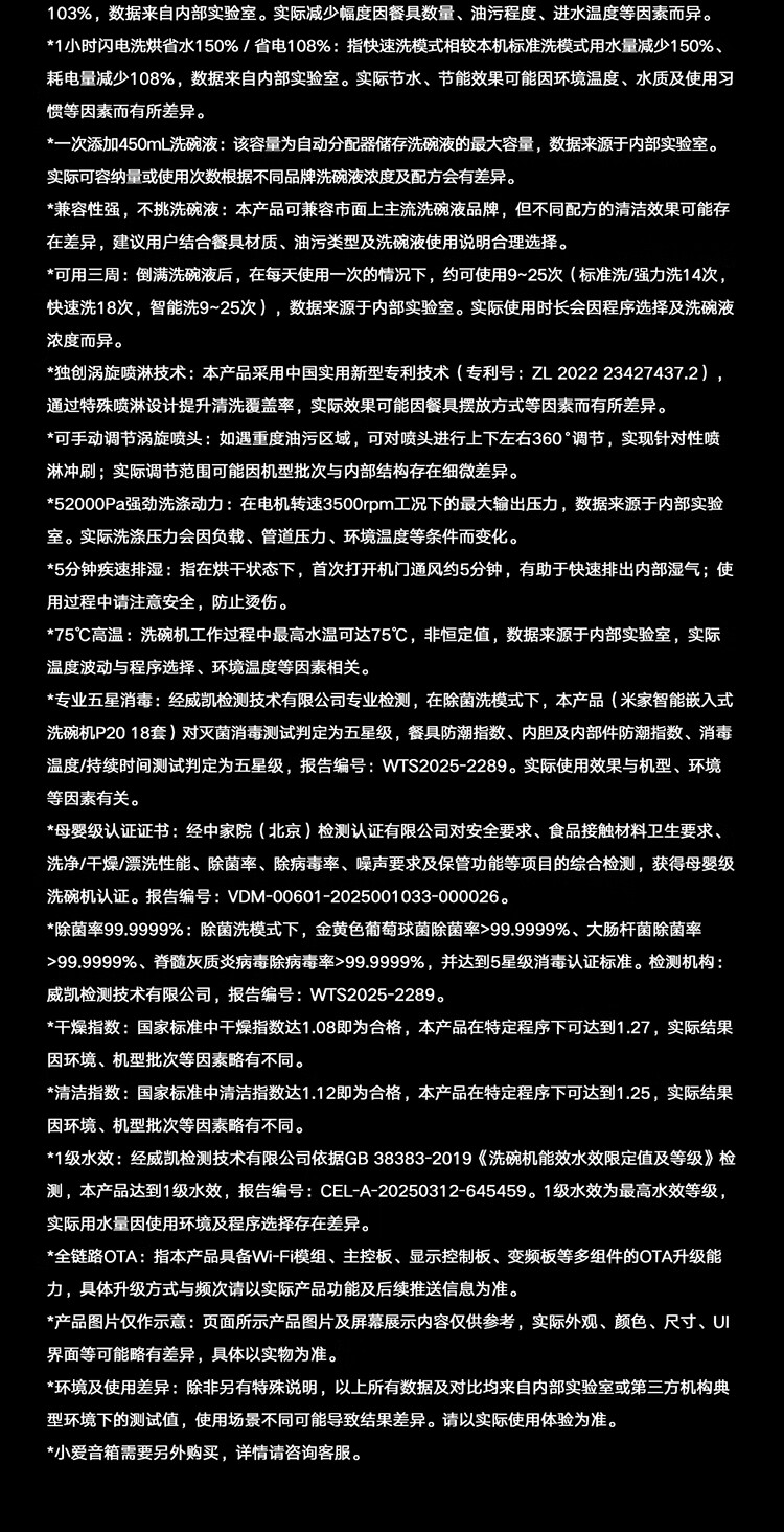 Mijia Xiaomi fully built-in dishwasher Ai smart washing high-end 18 sets P20 washing and disinfecting integrated 135 drying 59 minutes washing and drying automatic opening and closing door QMDW1803M