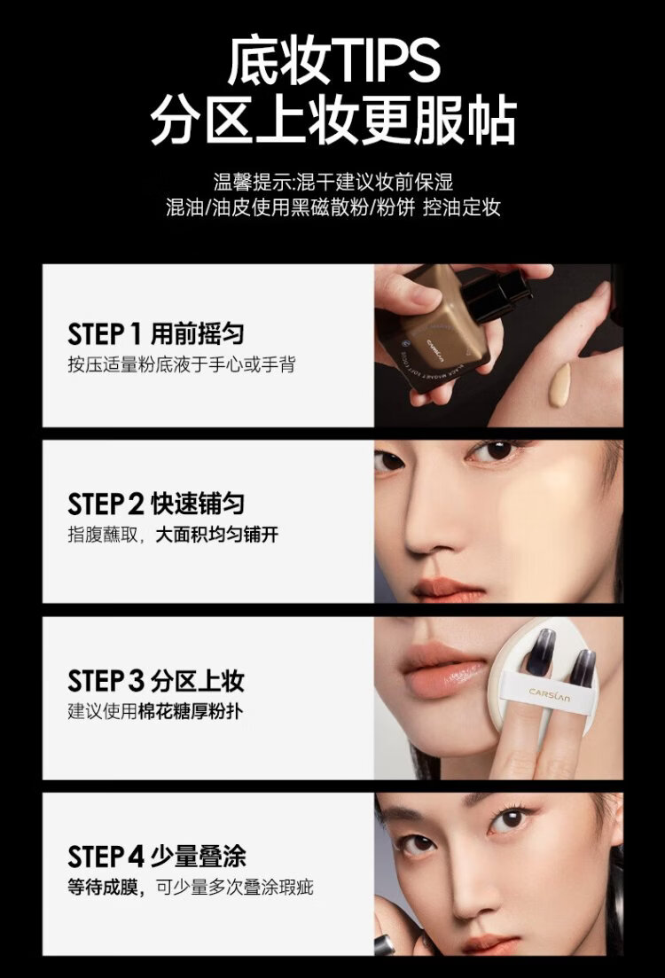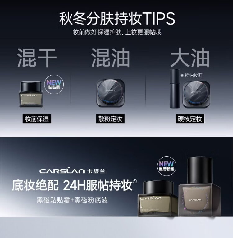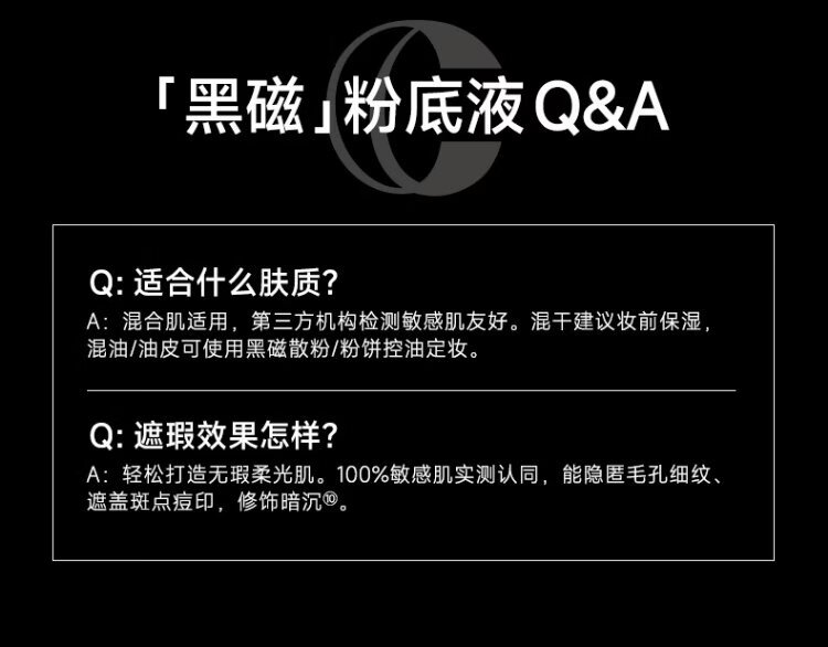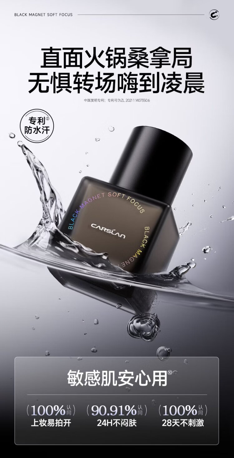 Carslan Black Magnetic Liquid Foundation Concealer, Oil Control, Long-lasting, Anti-sweat, No-Removal, Mixed Skin, Long-lasting Makeup W01 30g New Year's Gift for Women
