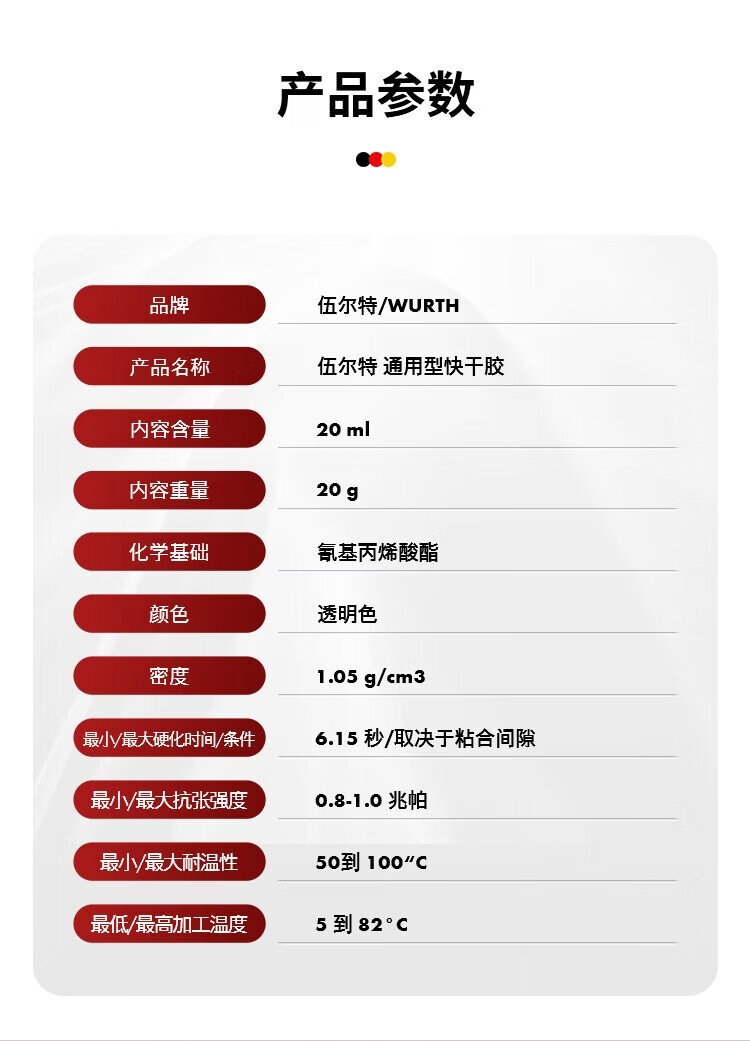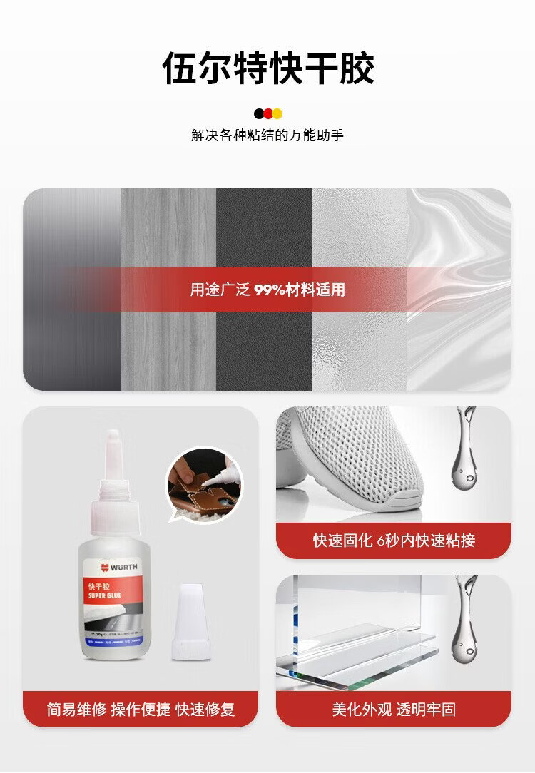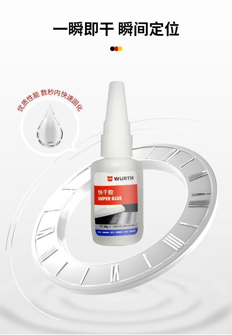 WURTH German brand quick-drying glue strong glue liquid glue 6-second instant adhesion and high-transparency formula transparent, traceless and non-whitening Non-universal glue 502 sticks to metal, plastic, ceramics and wood