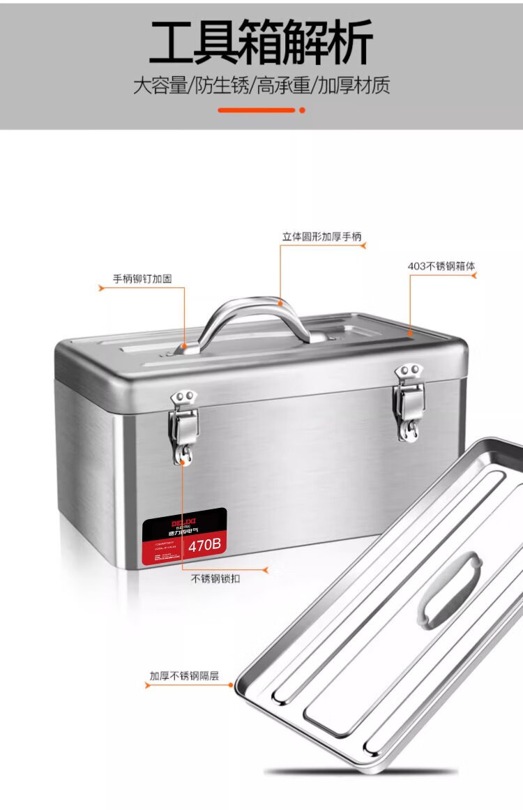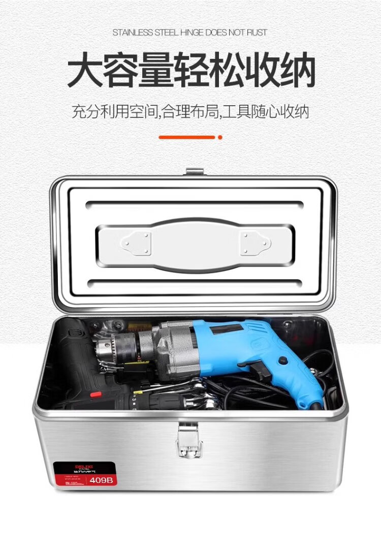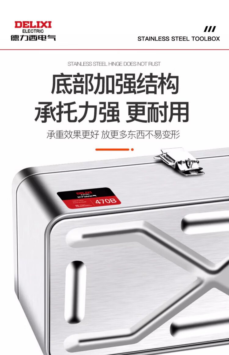 DELIXI ELECTRIC stainless steel tool box storage box car home storage box thickened hardware iron box portable large size