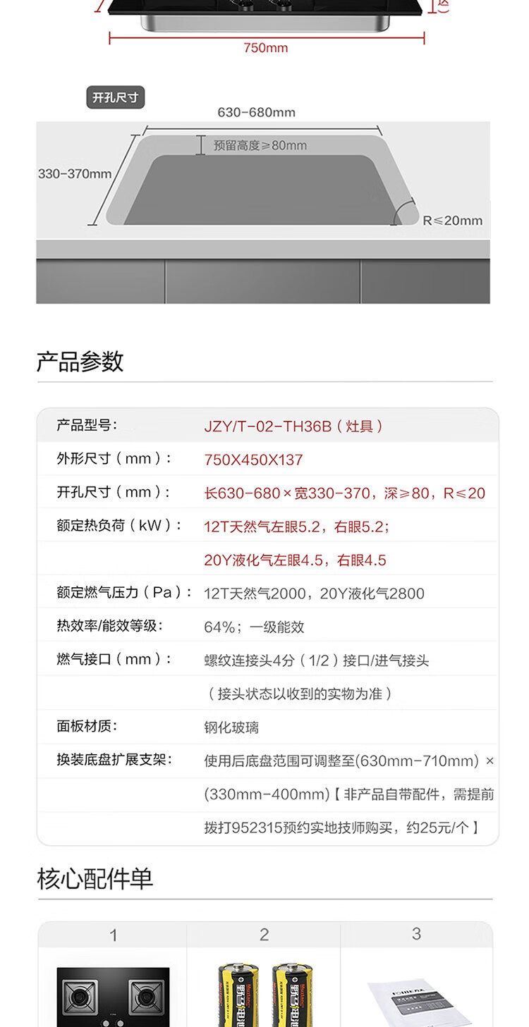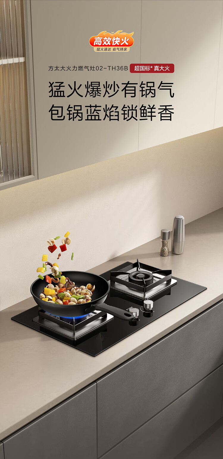 FOTILE Gas Stove Natural Gas Household Embedded Double Stove Adjustable Replacement Stove 5.2kW* Fierce Fire Gas Stove 02-TH36B Government Subsidy 20%