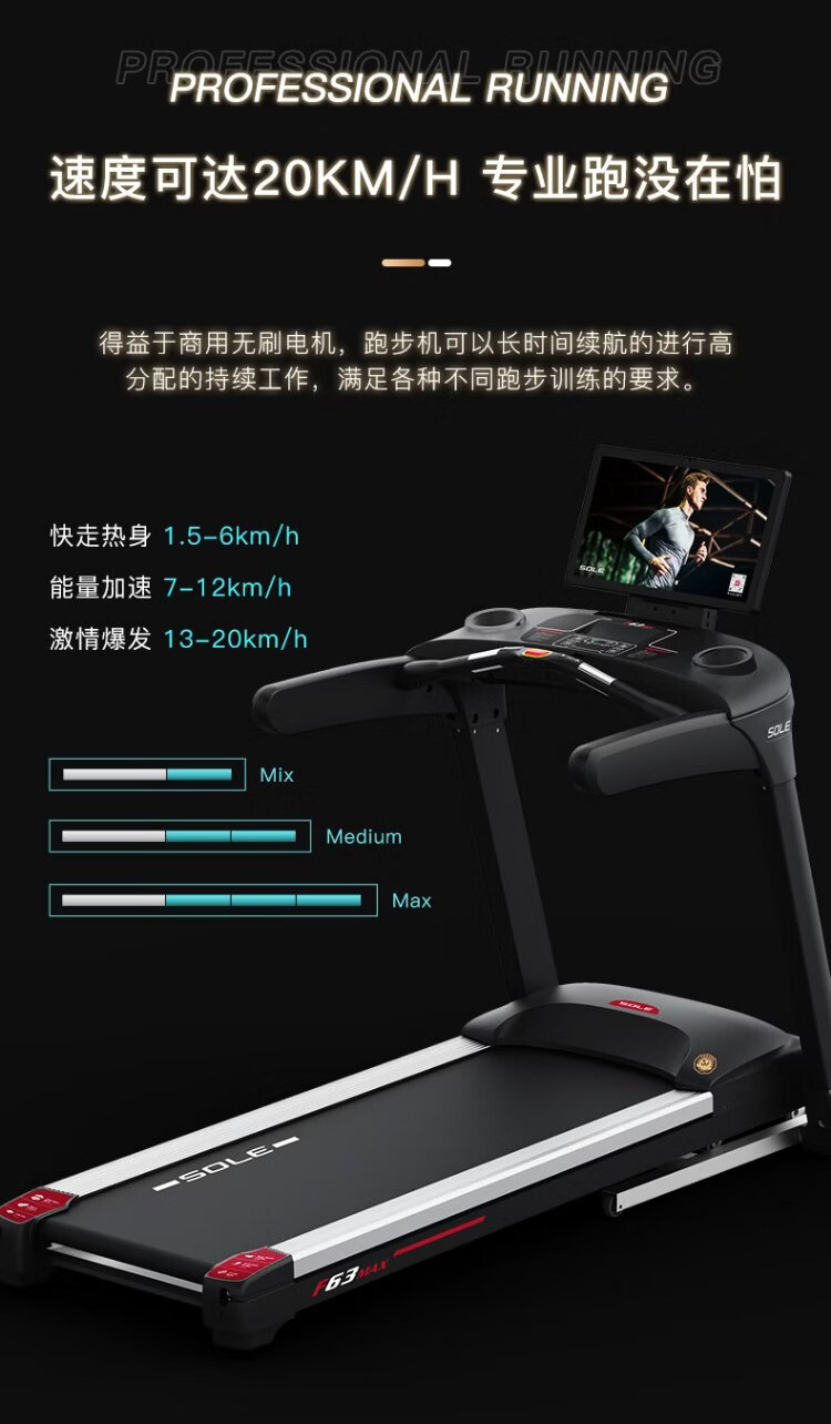 SOLE American high-end treadmill for home use, a new popular model that can project the screen for real-time training, climbing and wide treadmill F63MAX