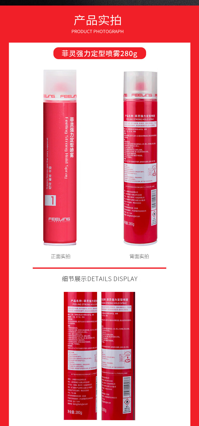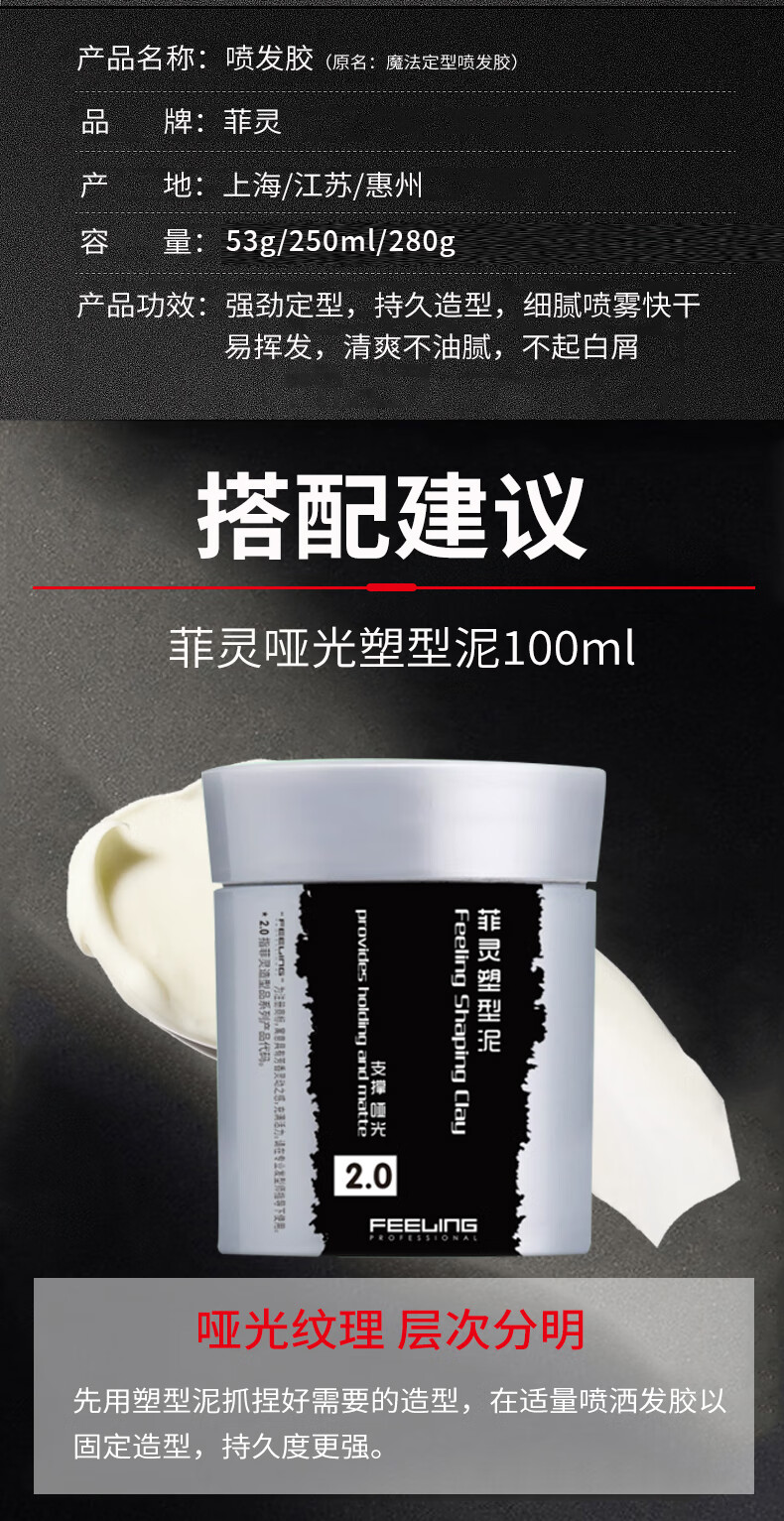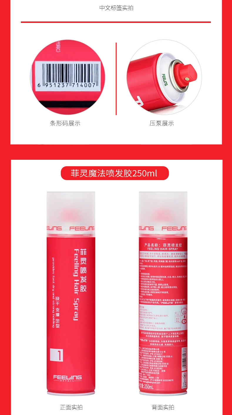 Feiling powerful styling spray 280g fluffy curly hair styling original 400ml hair spray same content