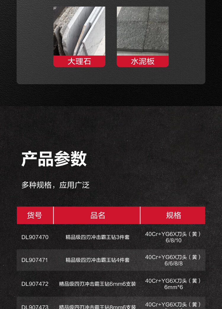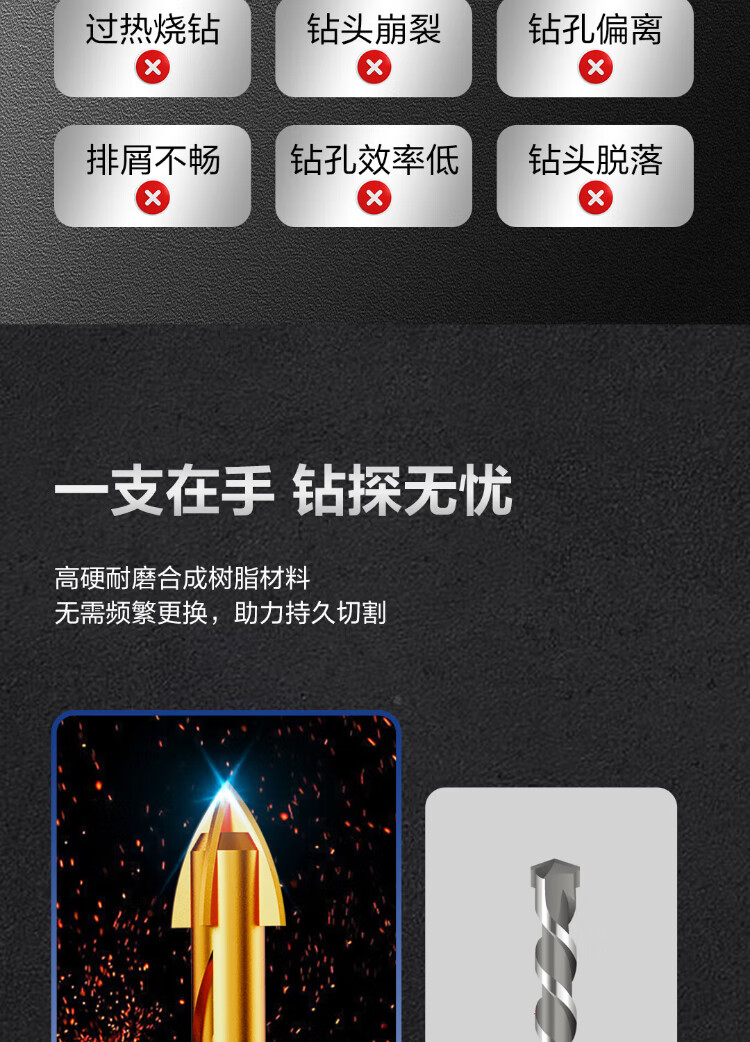 Deli impact four-edged overlord drill bit tile concrete hole drilling wall twist drill bit hole opener boutique 7-piece set