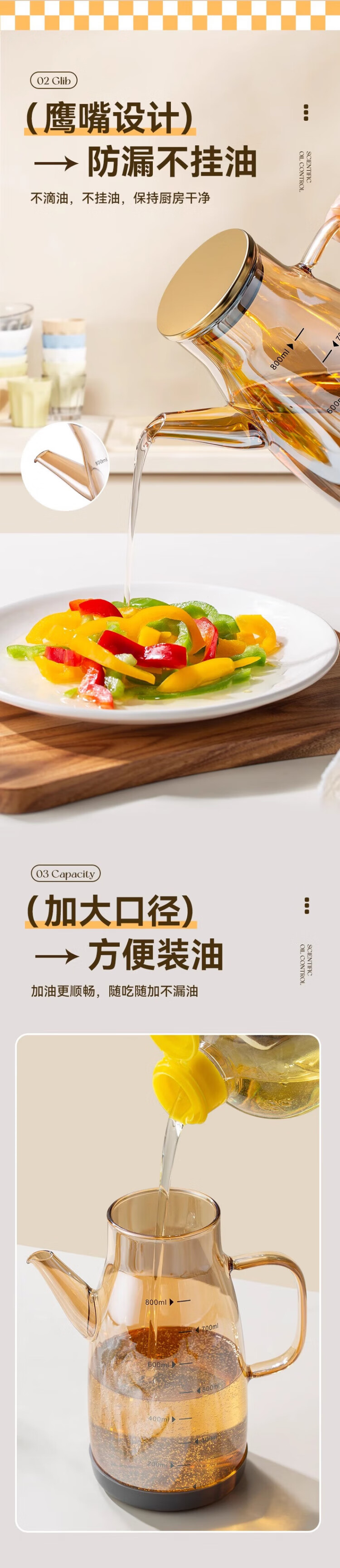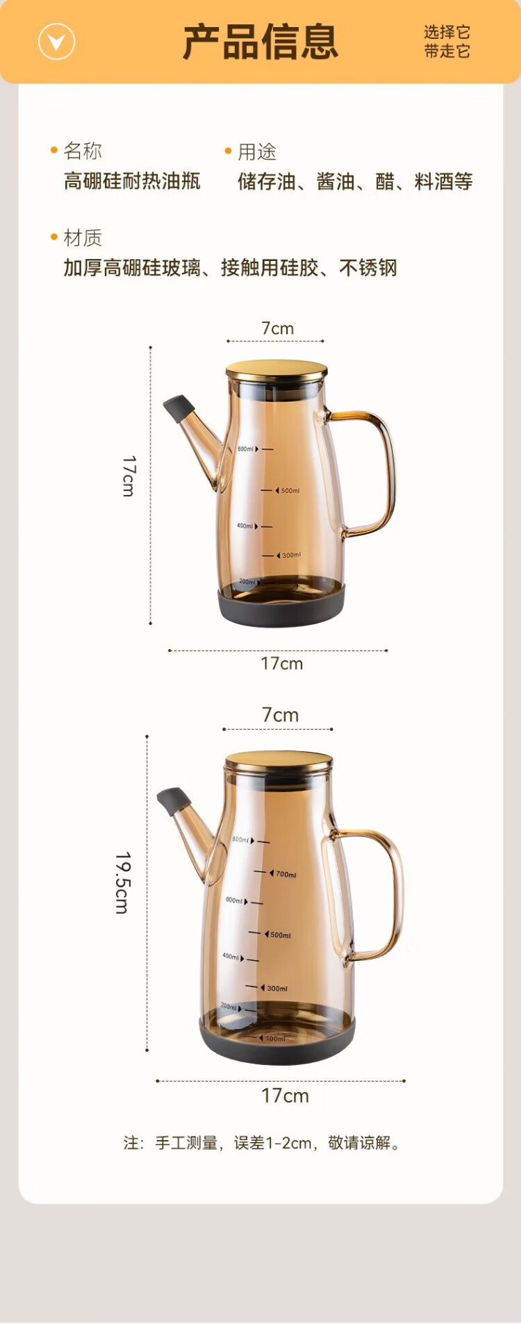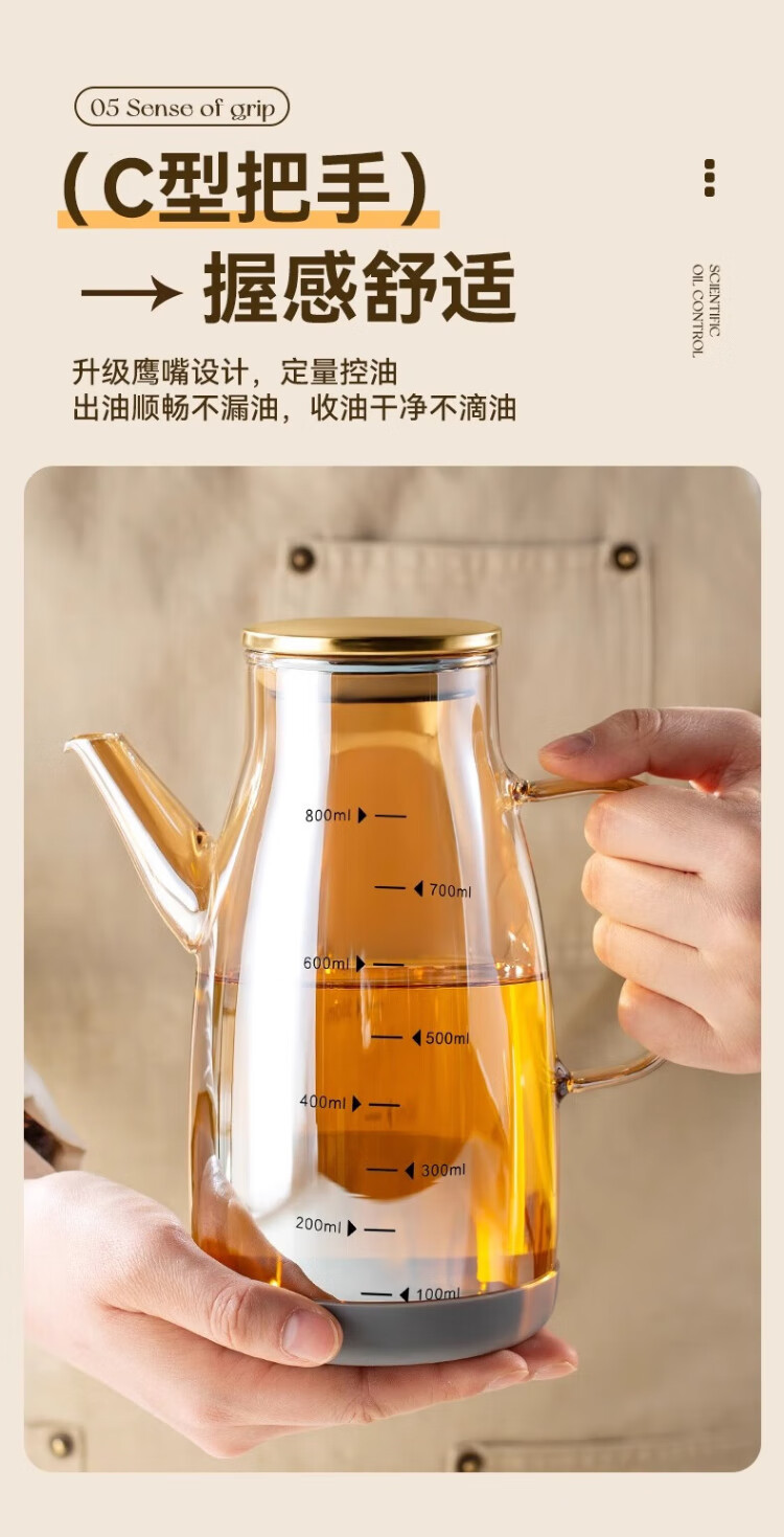 Shuwushuo high borosilicate glass oil pot kitchen household non-hanging oil bottle soy sauce vinegar seasoning bottle leak-proof oil tank 600ml