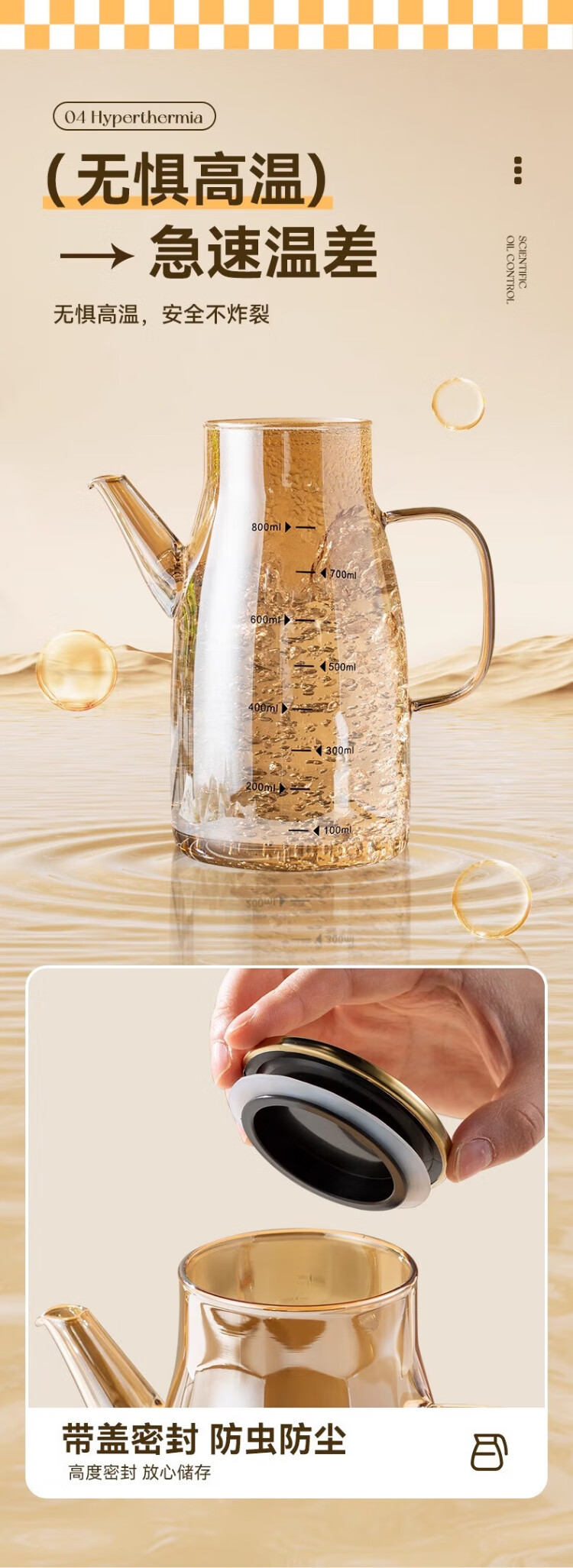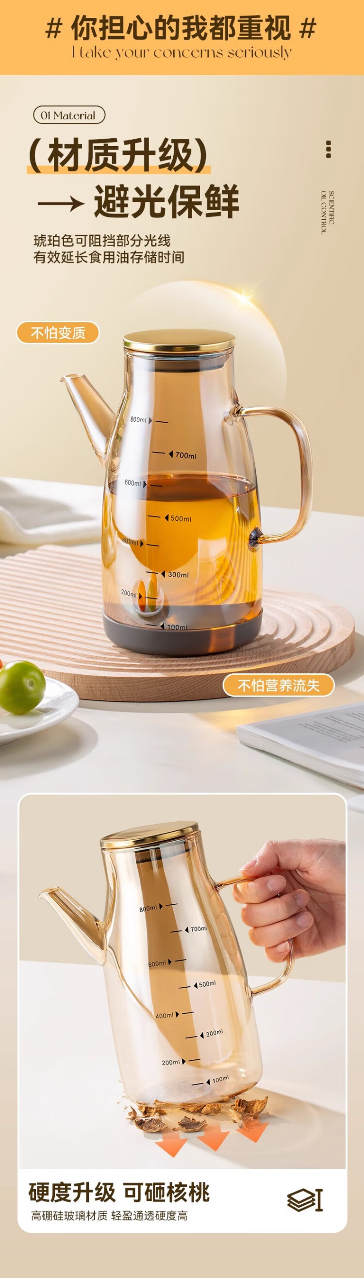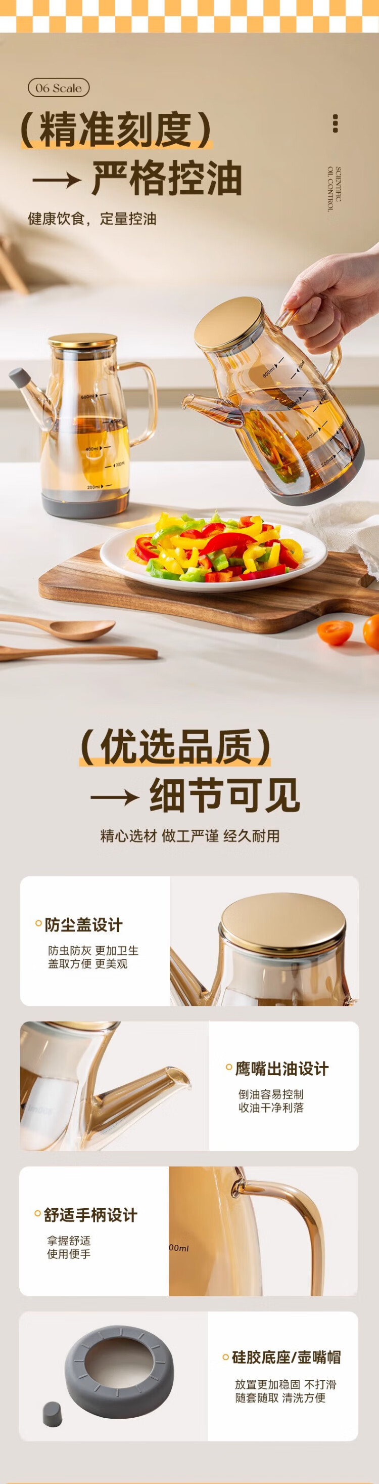 Shuwushuo high borosilicate glass oil pot kitchen household non-hanging oil bottle soy sauce vinegar seasoning bottle leak-proof oil tank 600ml