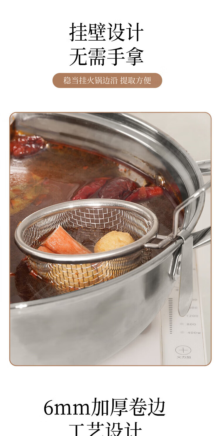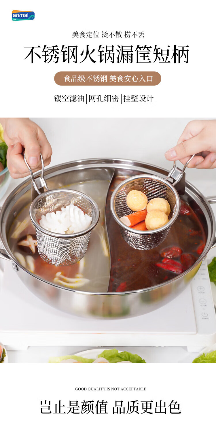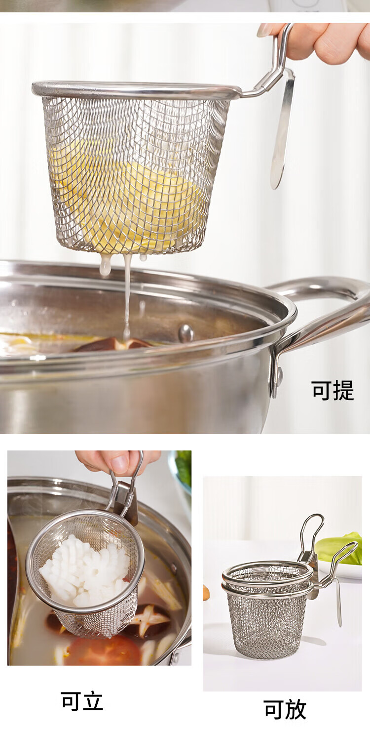 Anbuy 304 stainless steel hot pot colander kitchen household hanging side noodles spoon colander filter basket colander S1285