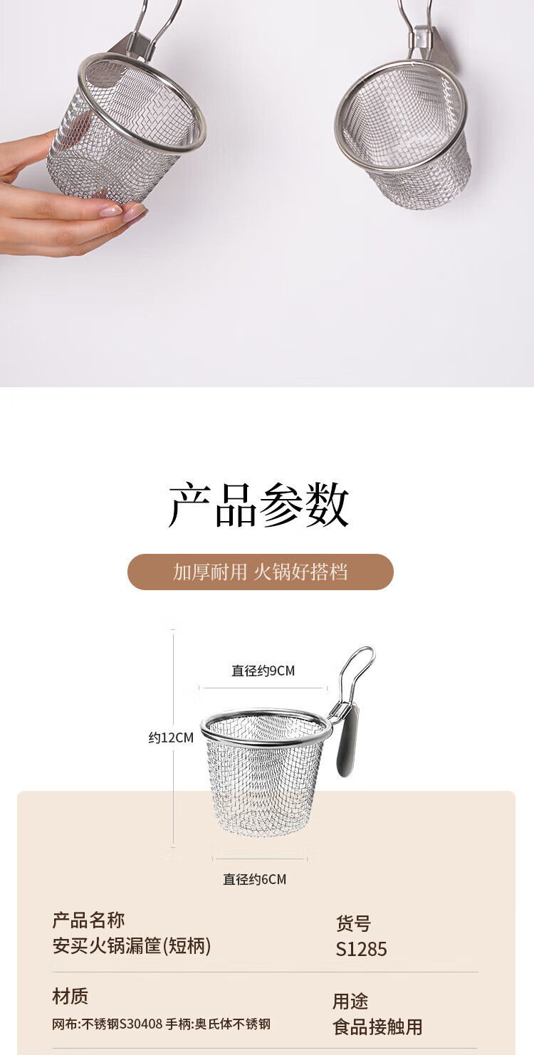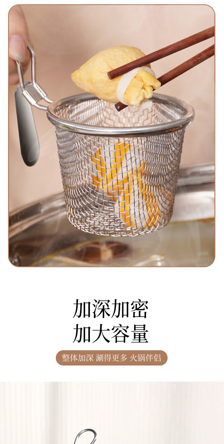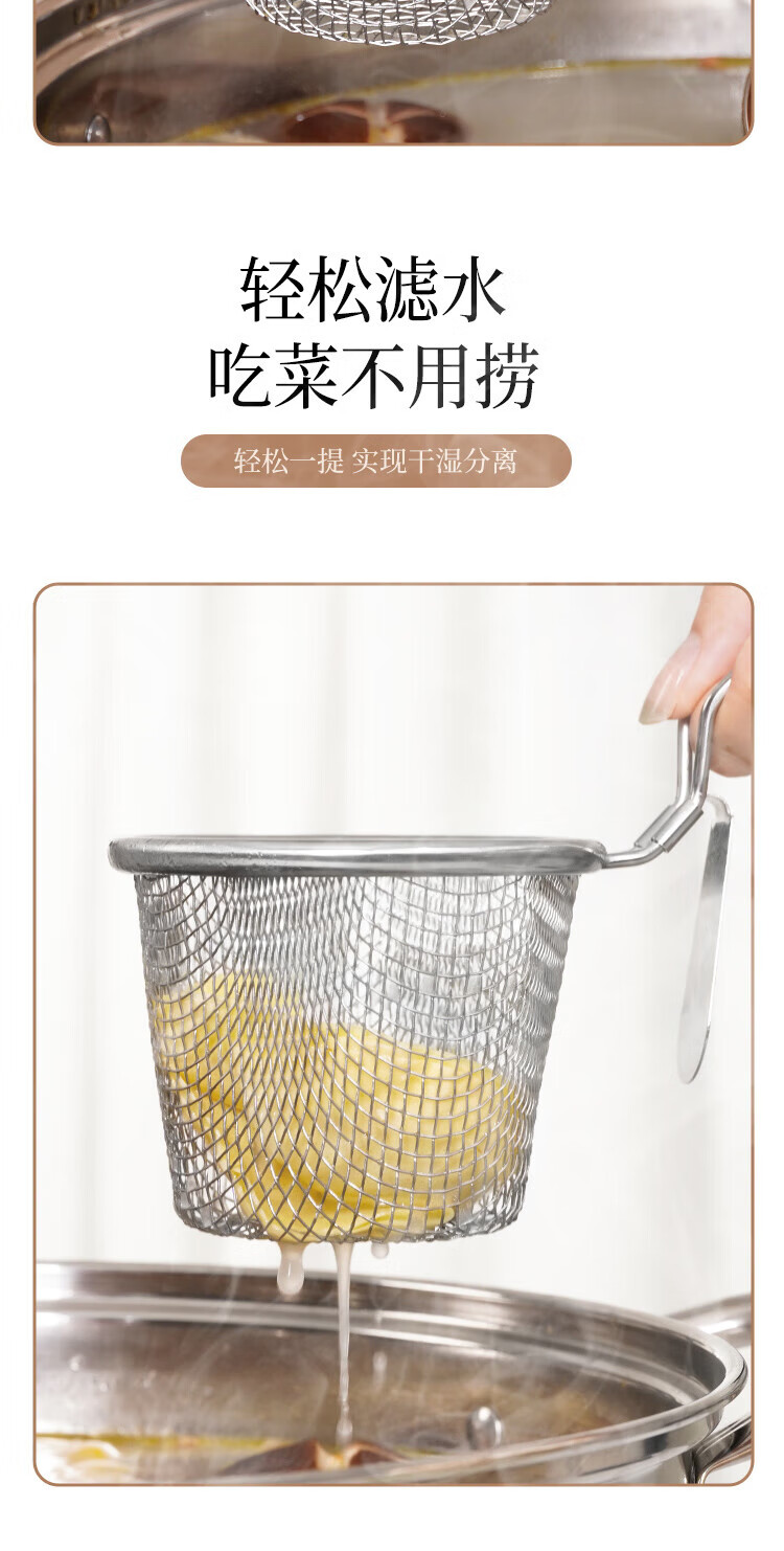 Anbuy 304 stainless steel hot pot colander kitchen household hanging side noodles spoon colander filter basket colander S1285