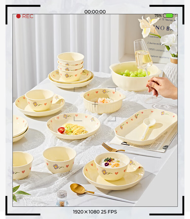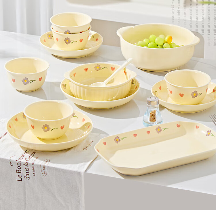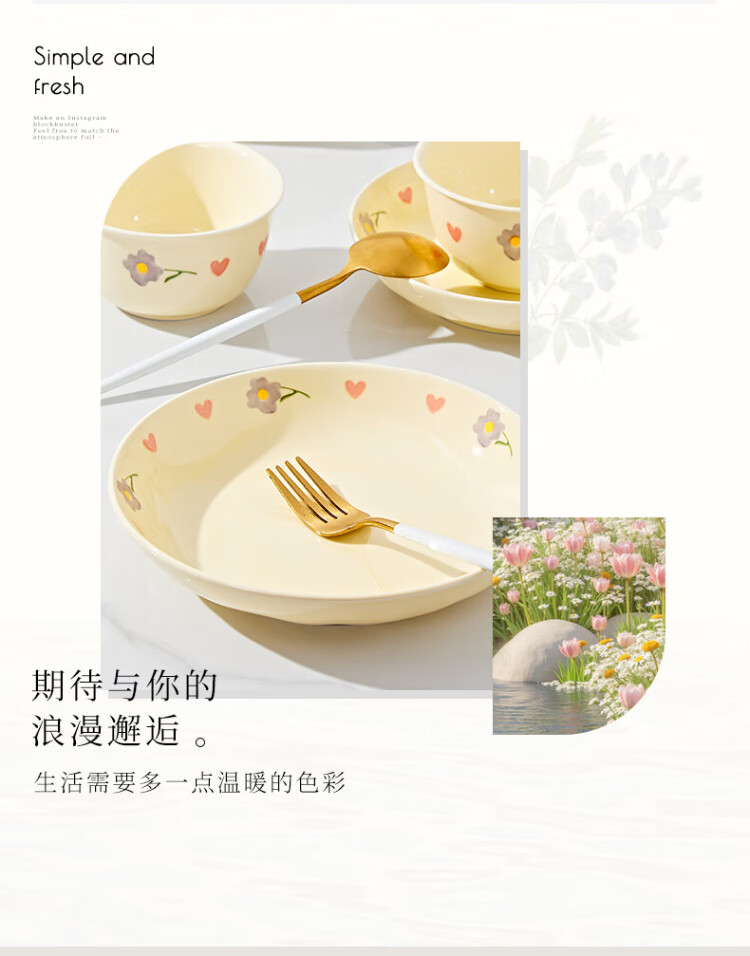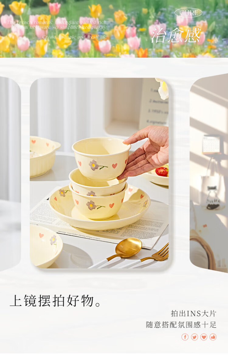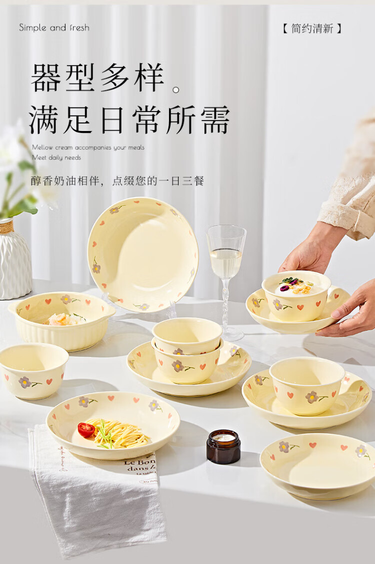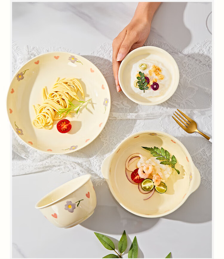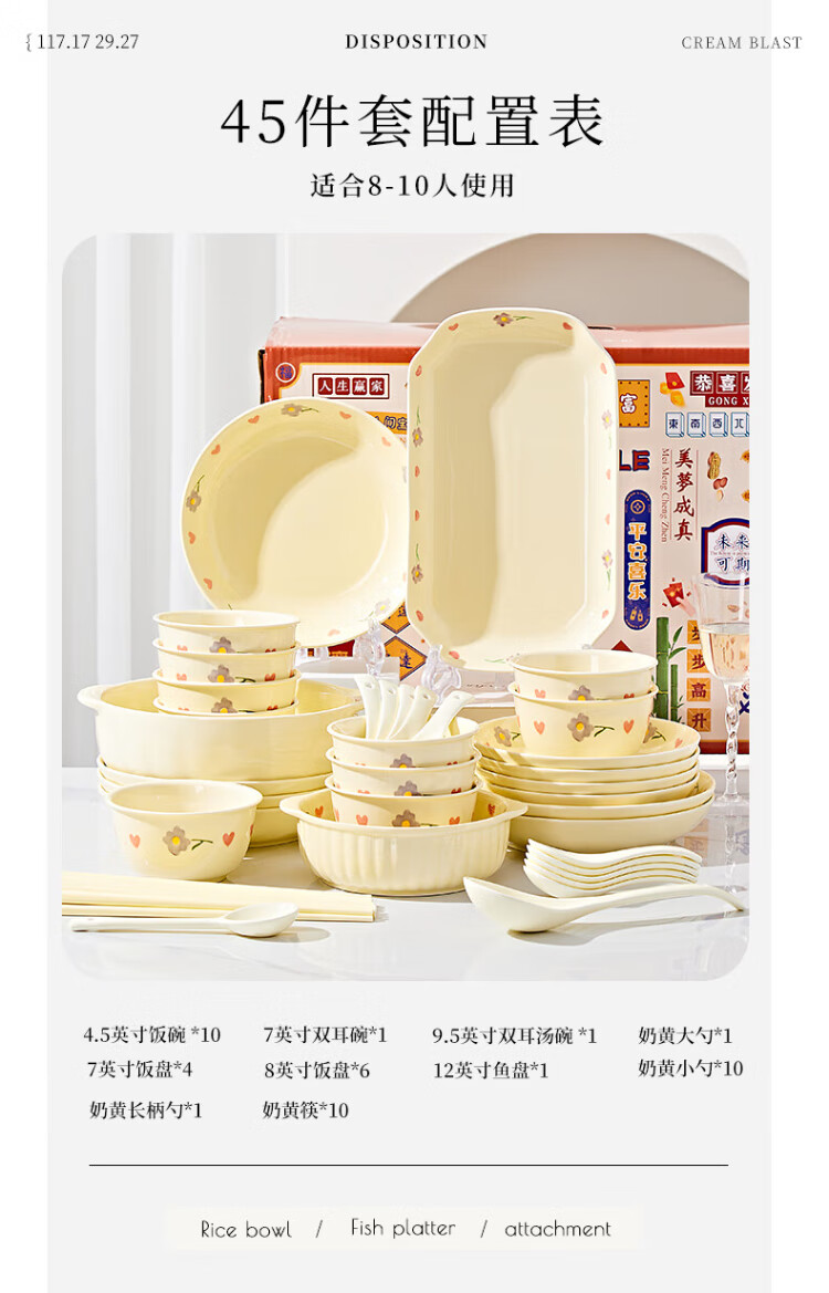Porcelain gift Wanjia bowl set bowls and plates tableware complete set cream style ceramic bowls and chopsticks combination high-end new housewarming 45 gift box