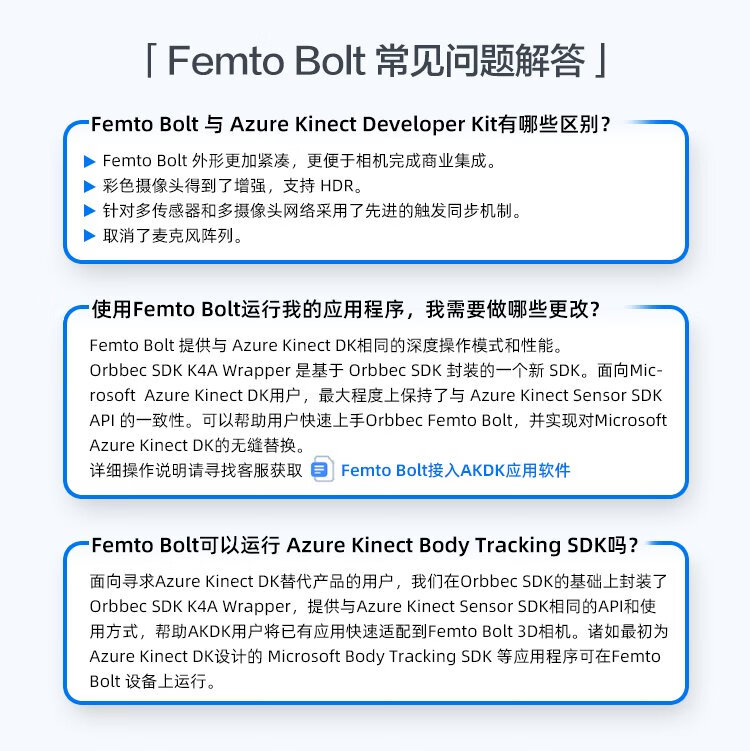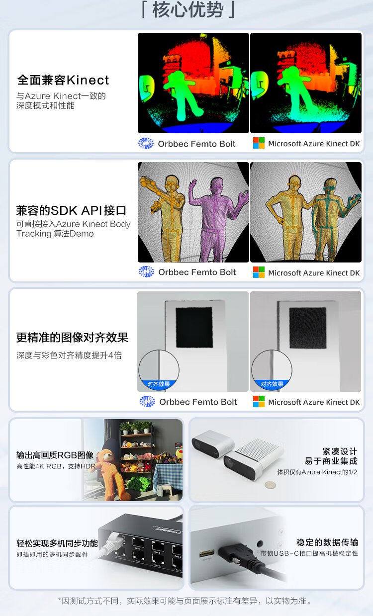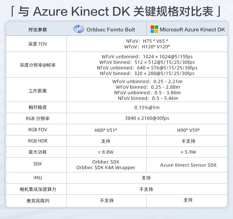 Obi Zhongguang Femto Bolt supports Microsoft skeleton algorithm human-computer interaction AzureKinect DK recommended alternative products
