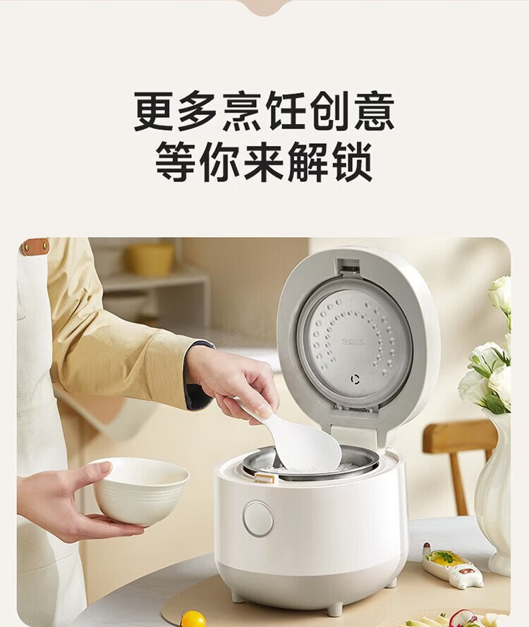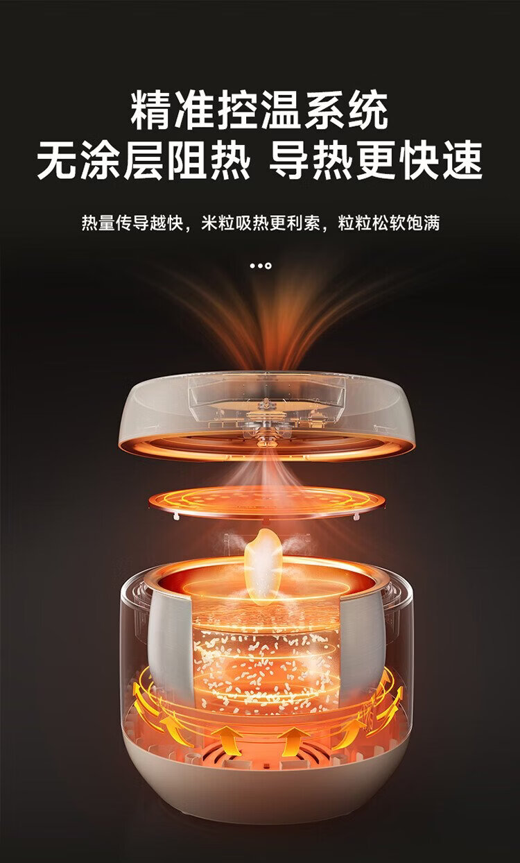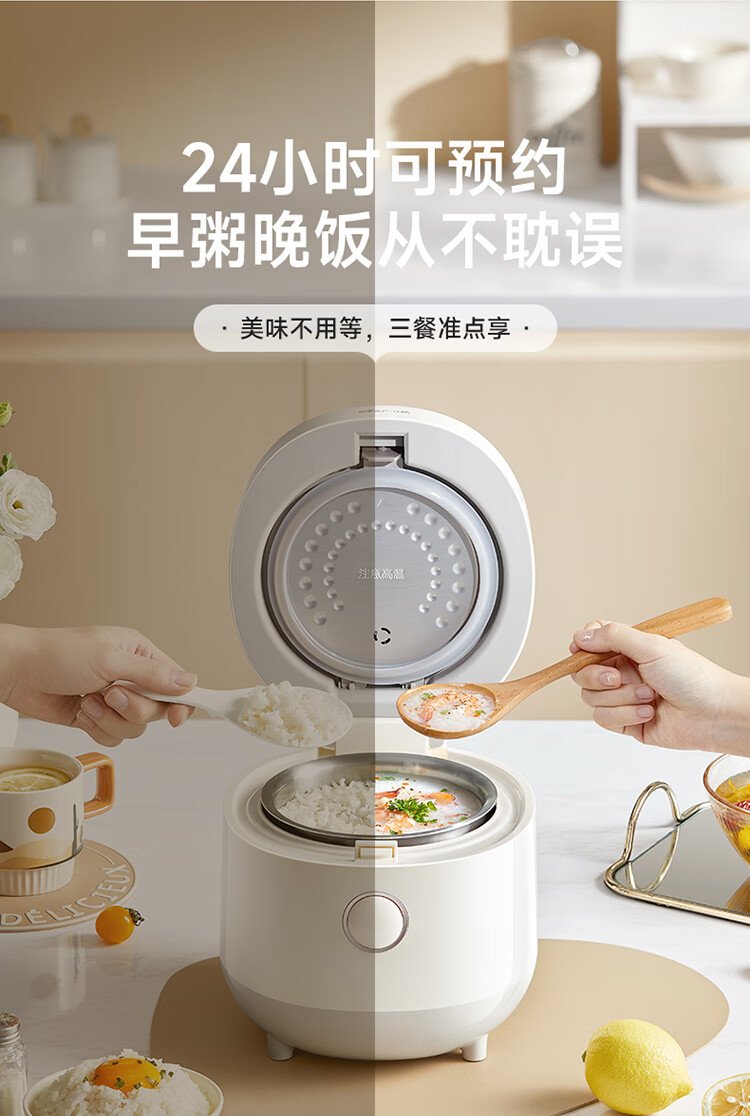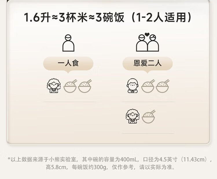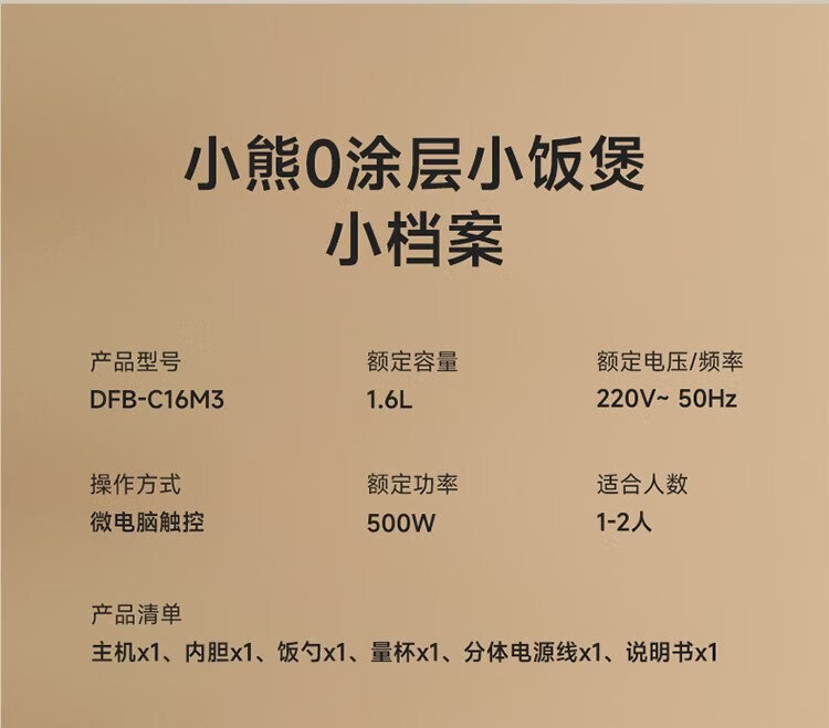 Bear rice cooker for 1-2 people, small rice cooker, 0-coating, healthy 316L stainless steel, one-touch fast cooking, micro-pressure multi-function, can be reserved 1.6LDFB-C16M3