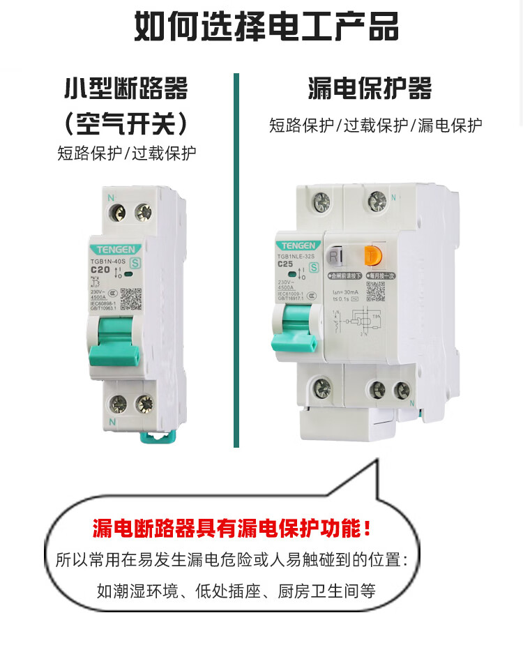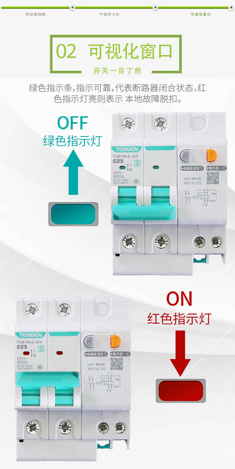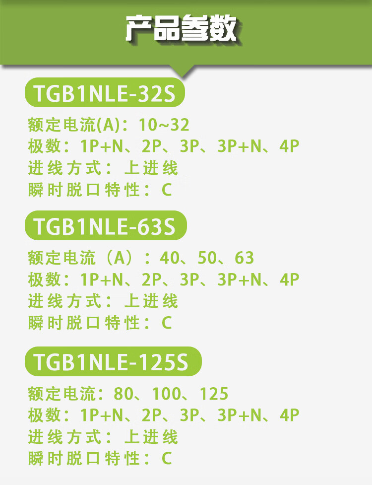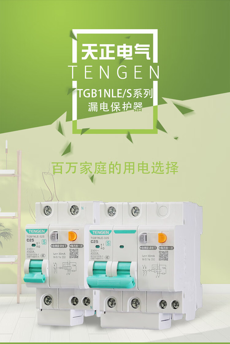 Tianzheng Electric (TENGEN) leakage protection leakage protection circuit breaker type C TGB1NLE-63S 2P C40 30mA