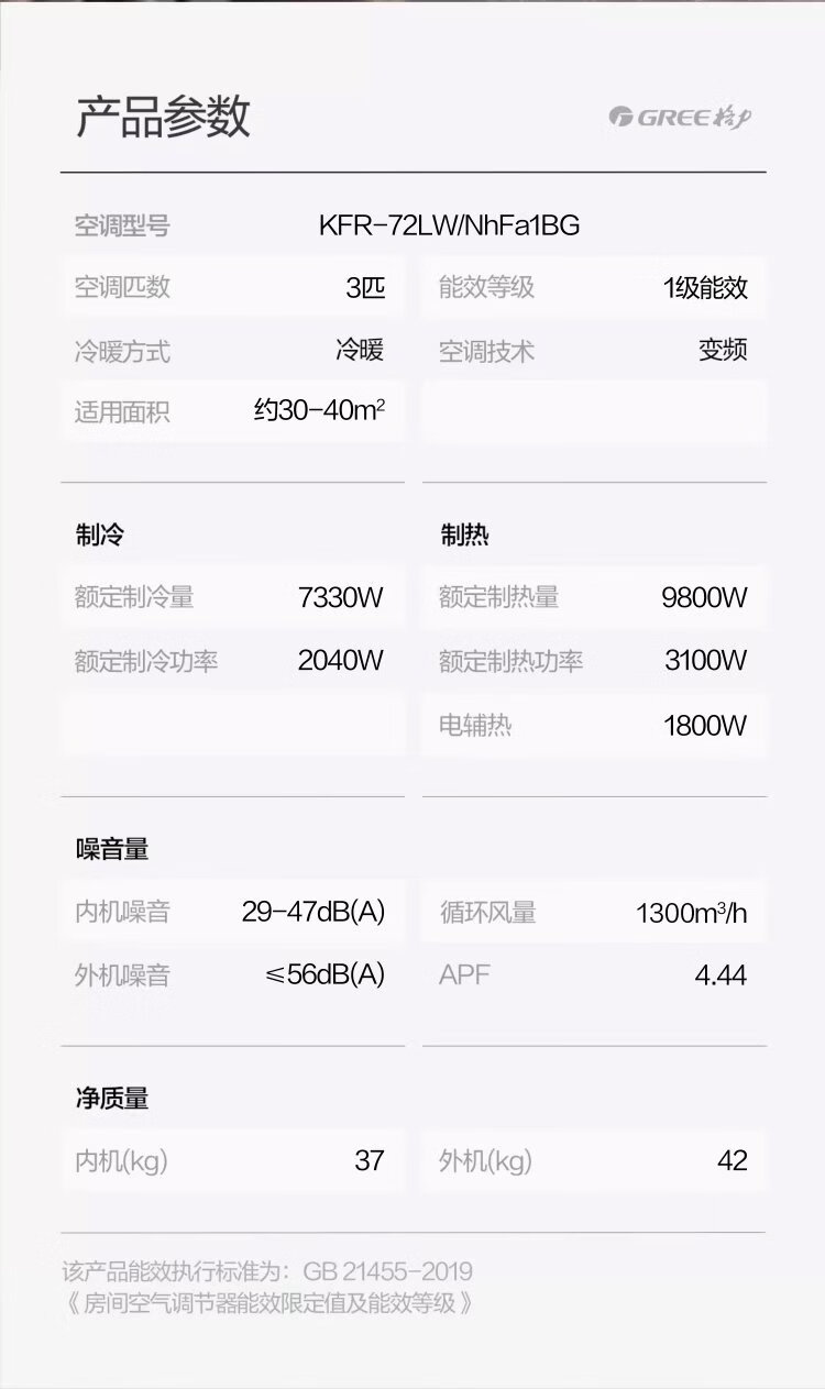 Gree air conditioner Yunshuchang 3 HP first-level energy efficiency, comfortable, windproof and direct blowing, pure copper tube, Jingzhi/Kingzhe upgraded vertical cabinet KFR-72LW/NhFa1BG national subsidy