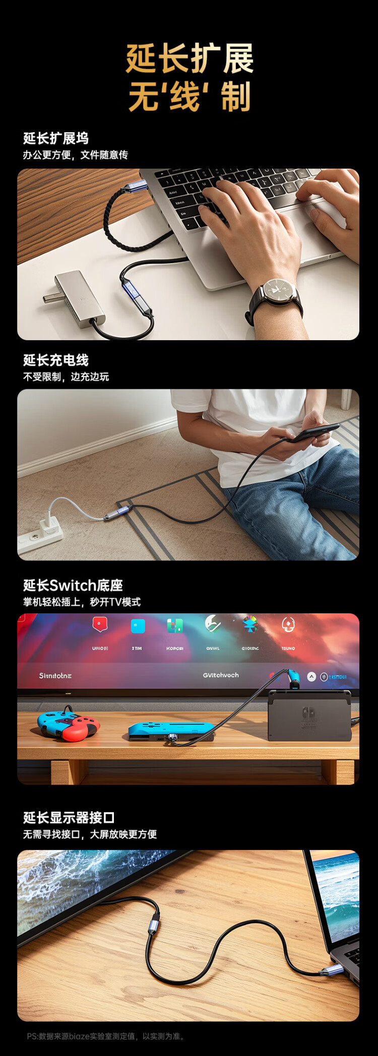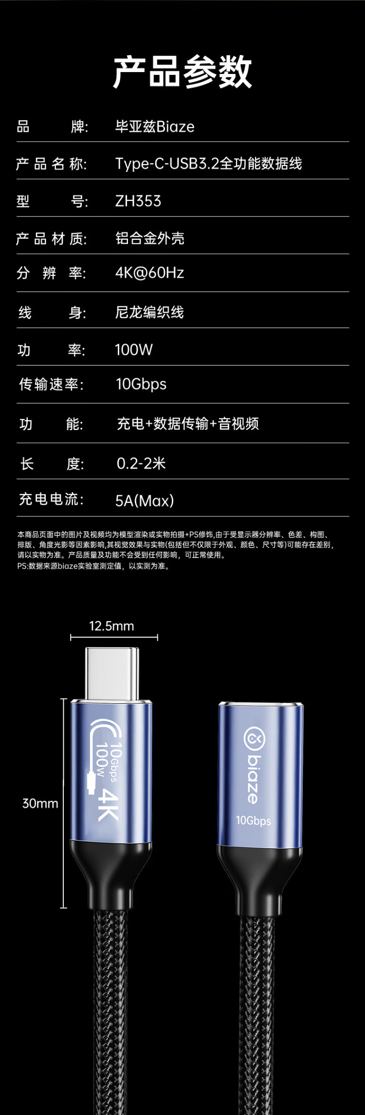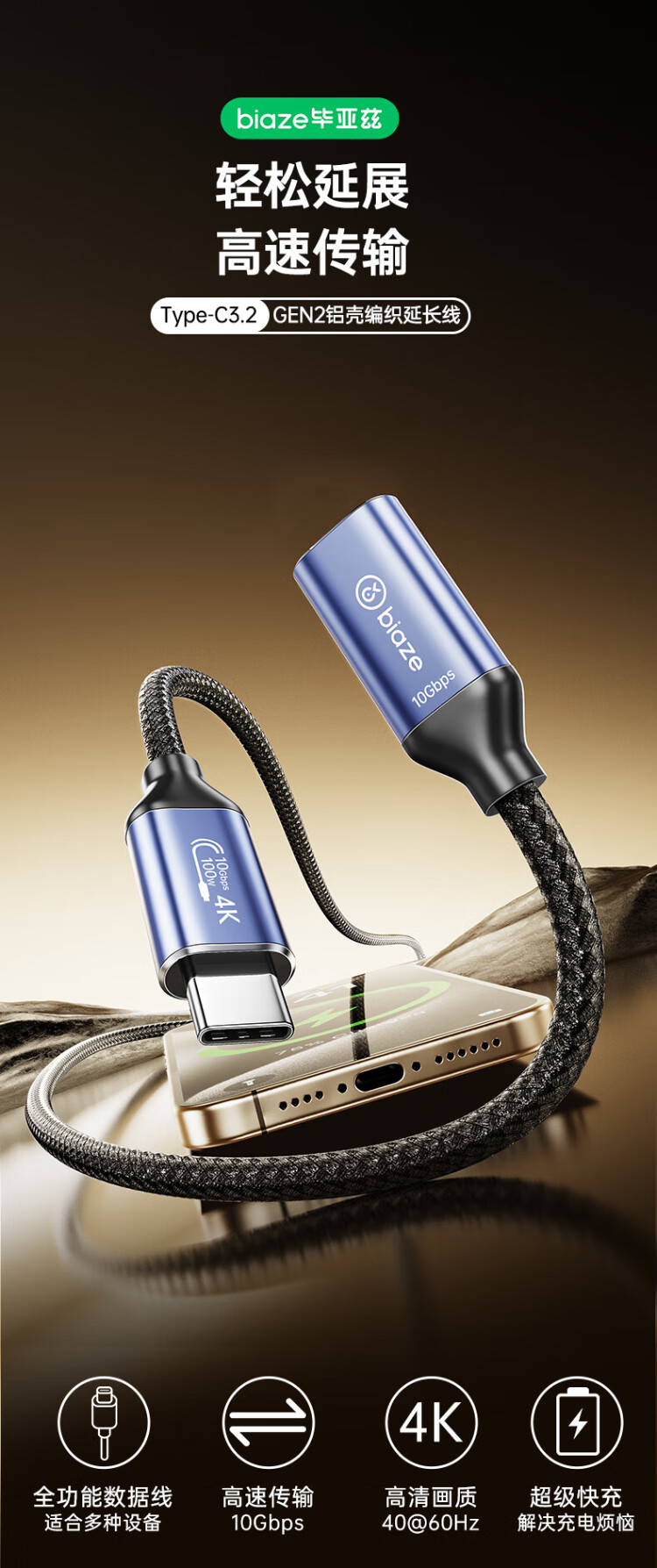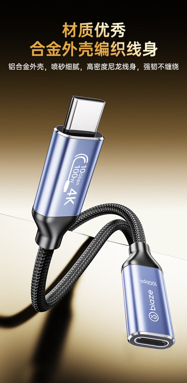 Biaz full-function cable Type-C extension cable data cable PD100W male to female usb3.2gen2 charging video transmission cable 0.5 meters