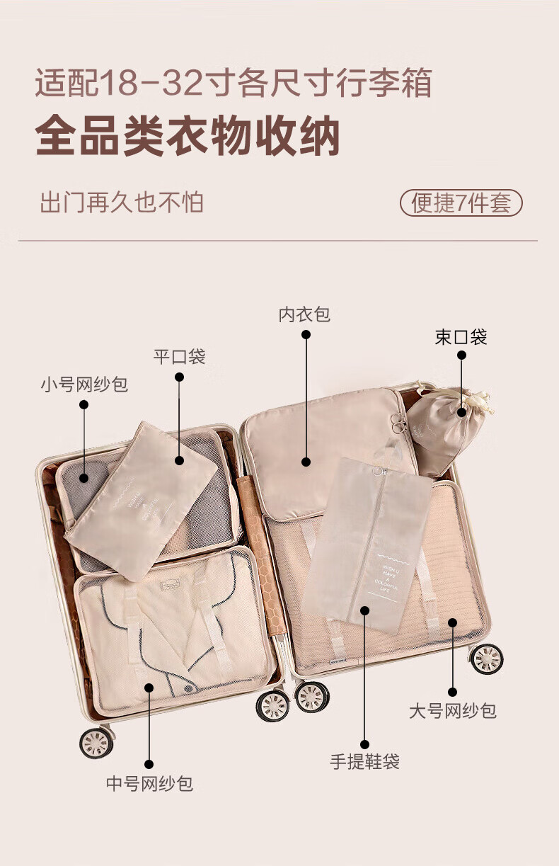 Huaqi Valley travel storage bag clothing suitcase storage bag portable portable classification sorting package seven-piece set