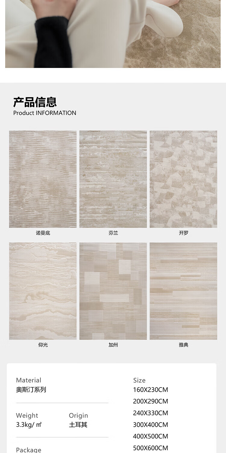 Guzhen carpet living room light luxury luxury bedroom sofa imported waterproof stain-resistant carpet Normandy-300x400CM