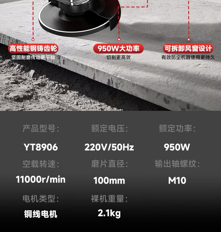 YAT 950W angle grinder household electric hand grinder cutting machine polishing machine small hand grinding wheel polishing machine
