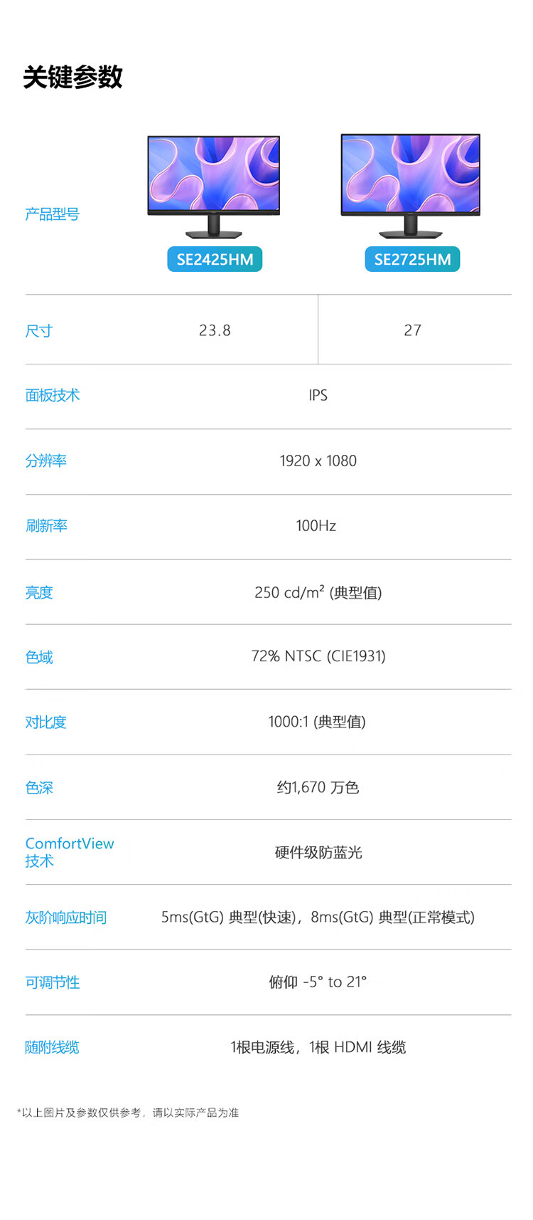 Quasi-new product Dell (DELL) 23.8-inch office monitor FHD IPS panel 100Hz hardware anti-blue light 72%NTSC home full HD computer display SE2425HM