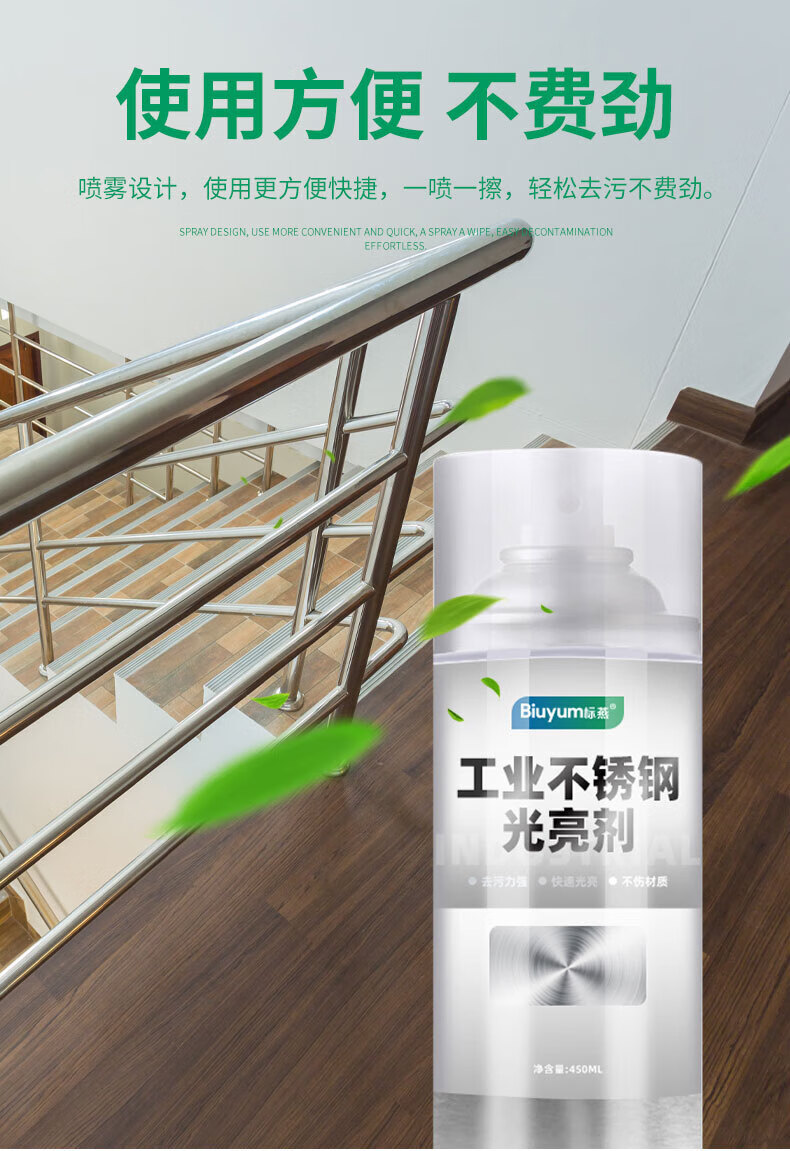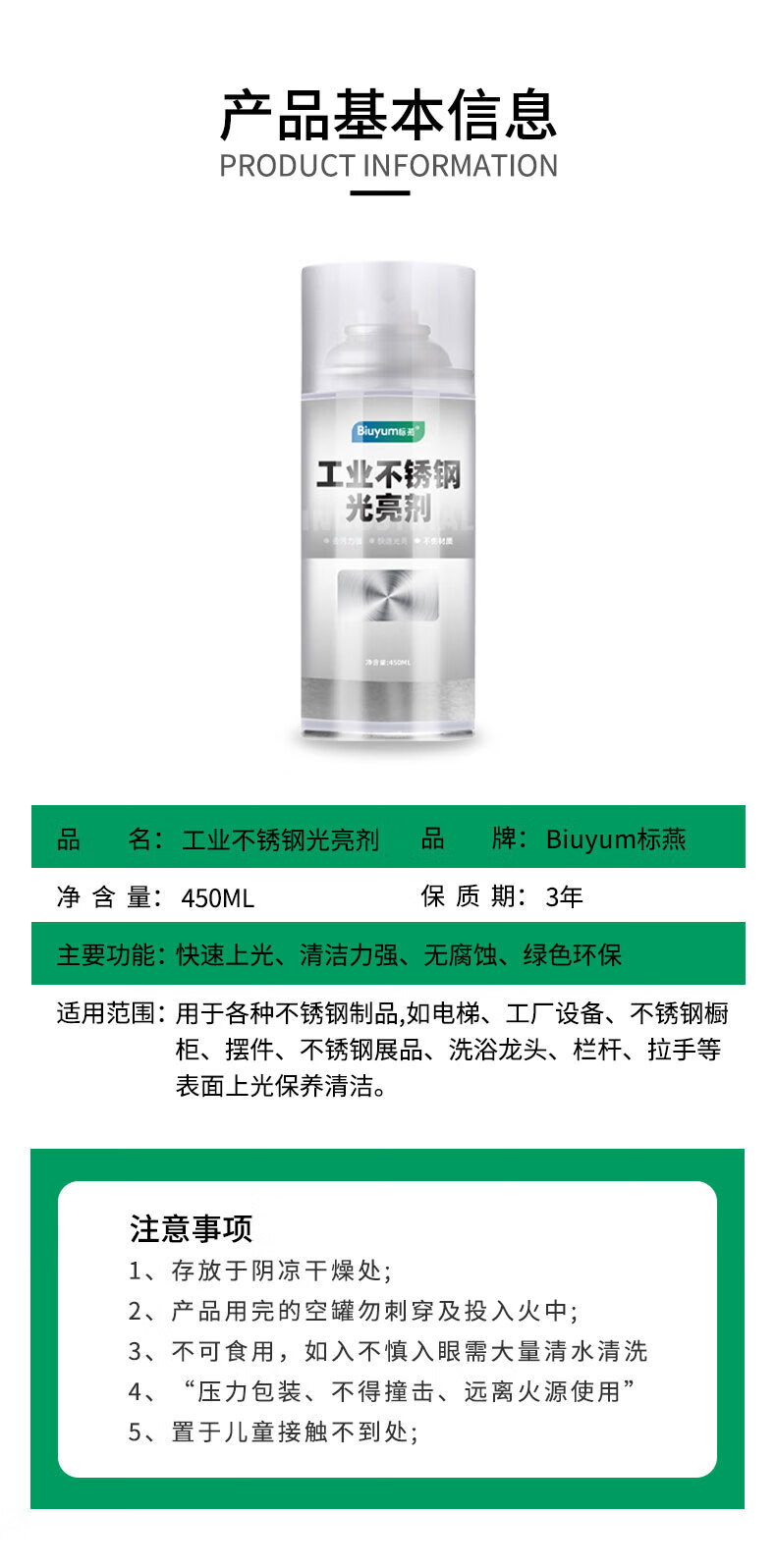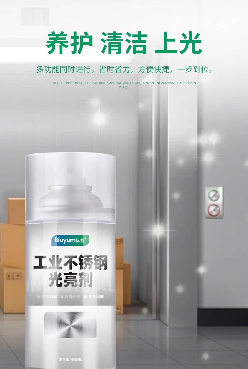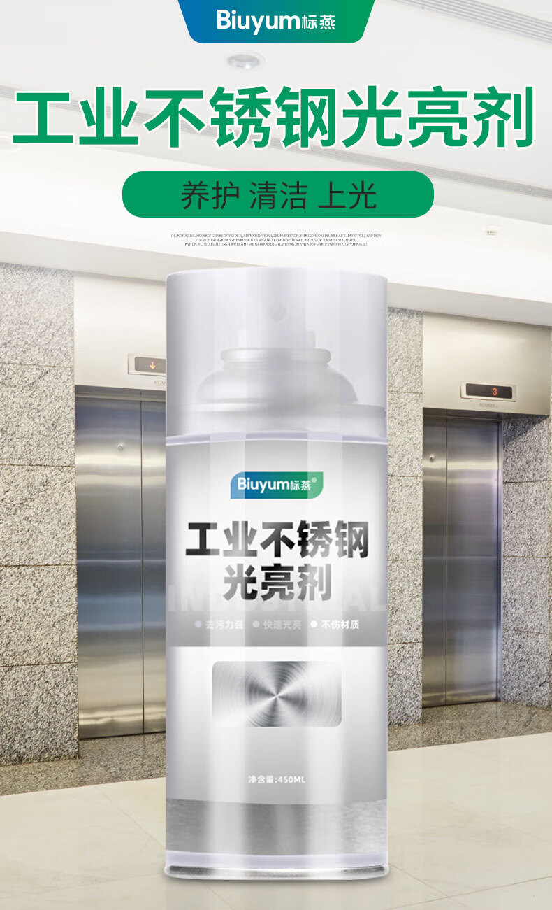 Biaoyan stainless steel cleaner elevator door brightener BXGGLJ003 polish S maintenance protective oil surface clean and bright 450ML