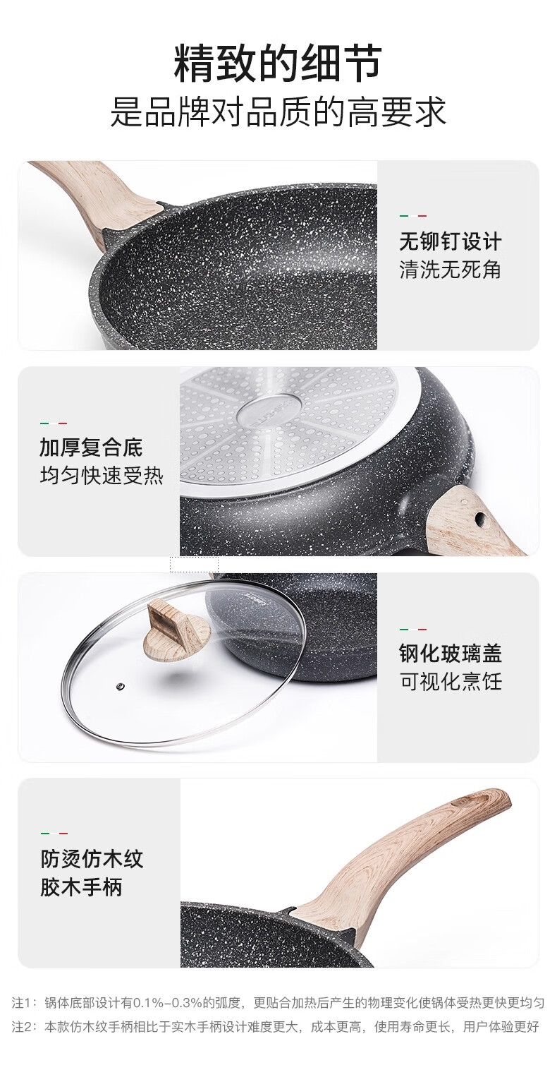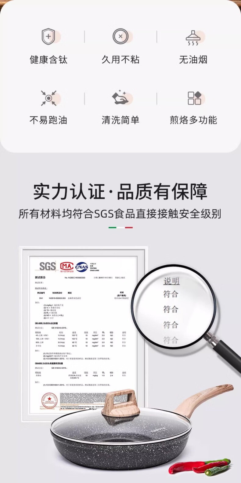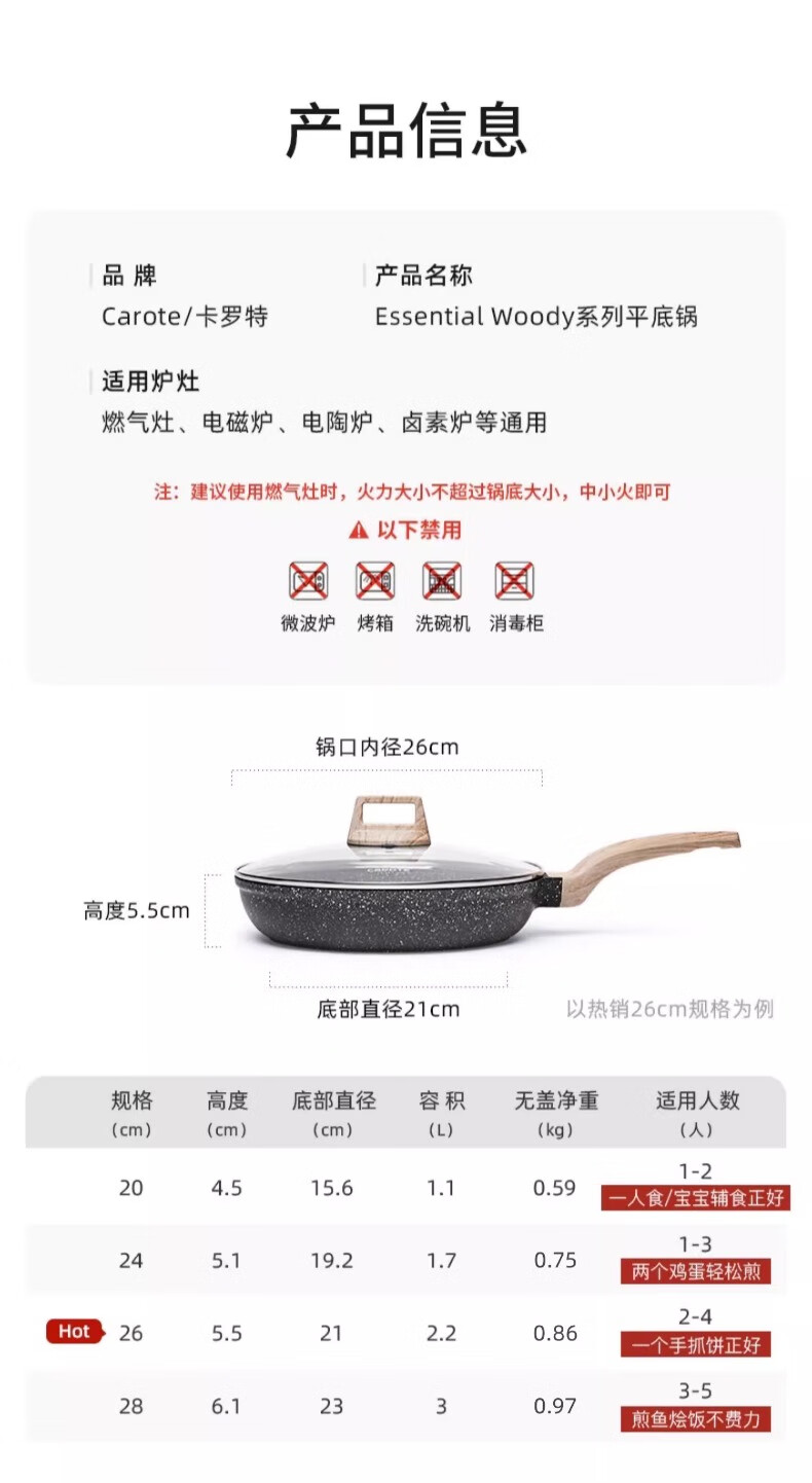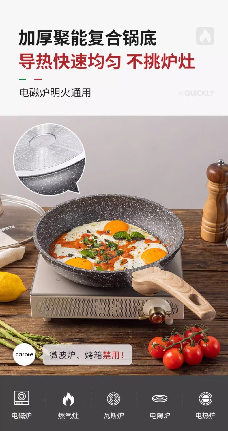 Carrot wheat rice stone pan steak frying pan non-stick pan household titanium pan small omelette pan induction cooker 24cm without lid