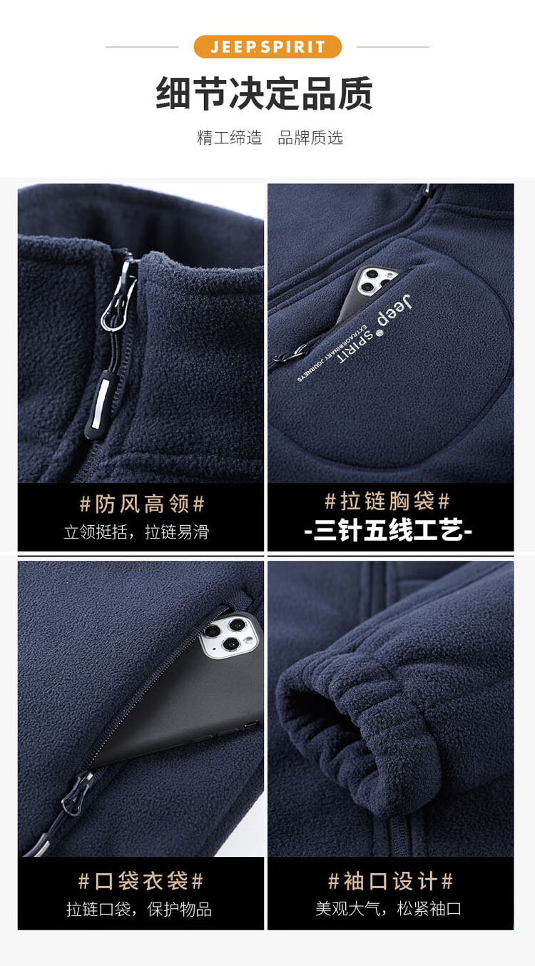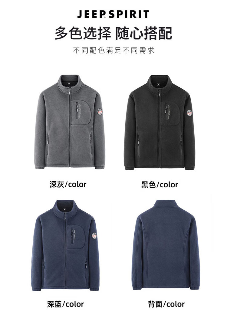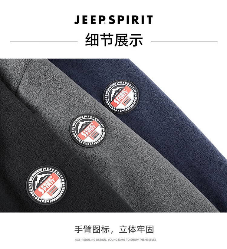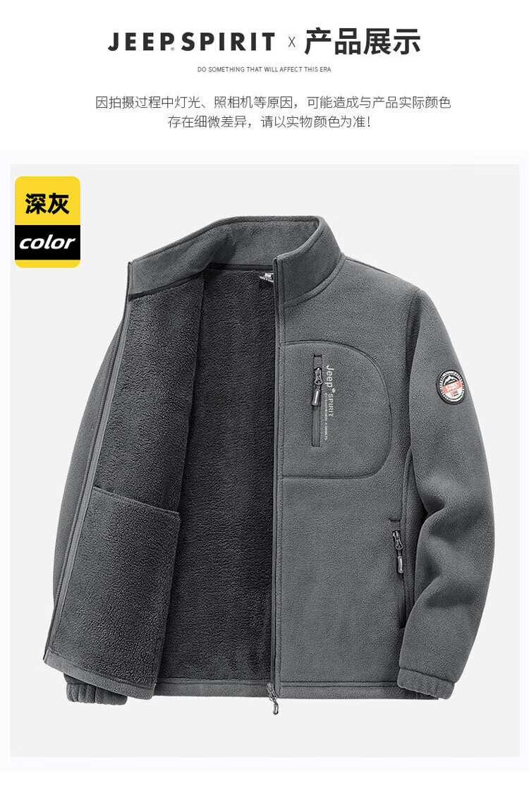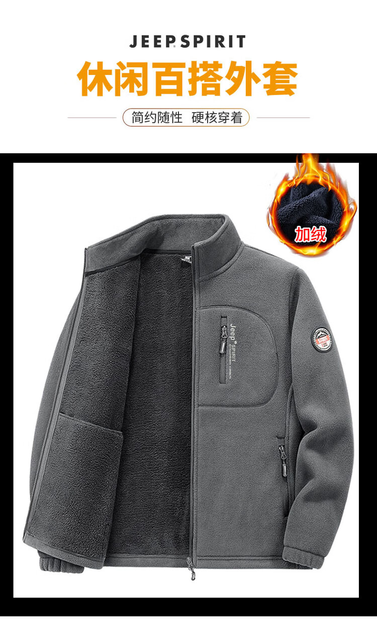 JEEP SPIRIT Jeep Jacket Men's Spring and Autumn Stand Collar Polar Fleece Jacket Men's Velvet Cardigan Sweater Men's Dark Gray XL